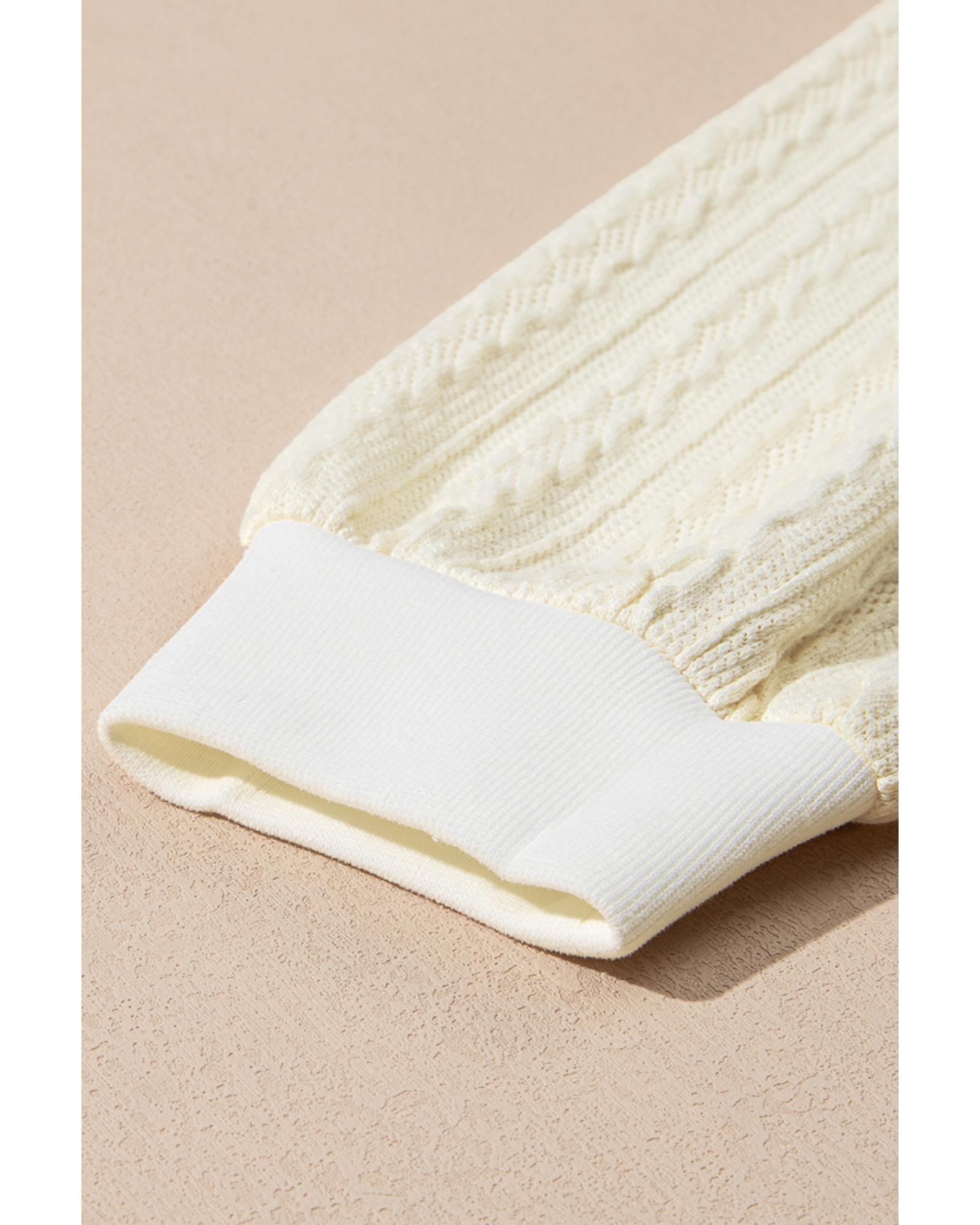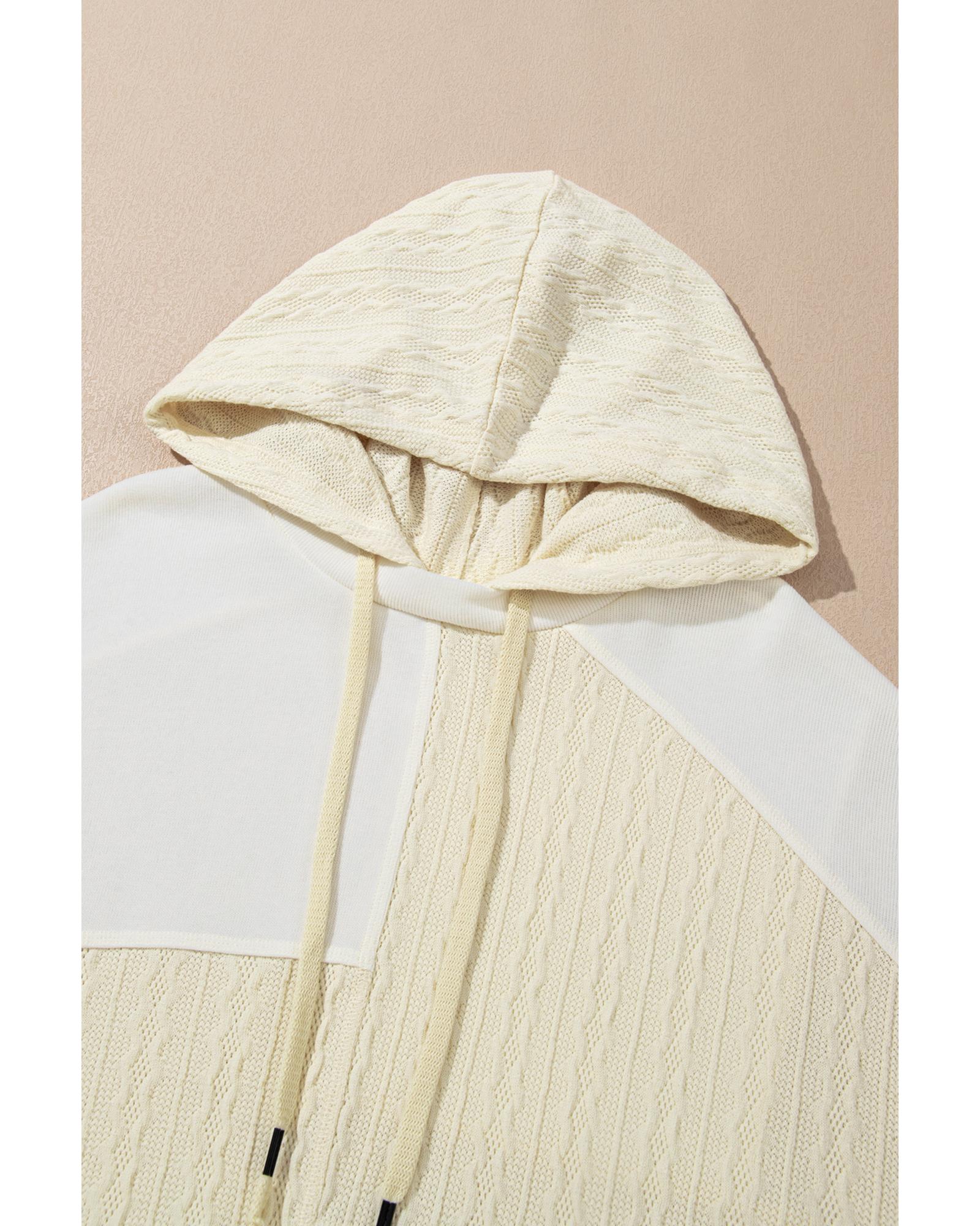 Beige Textured Patchwork Exposed Seam Plus Size Hoodie – 4X