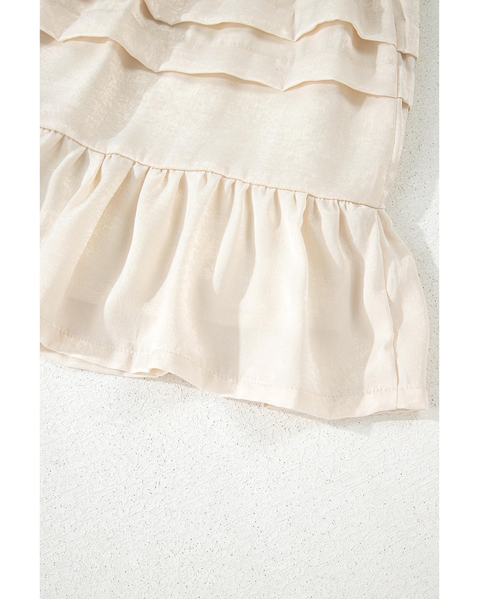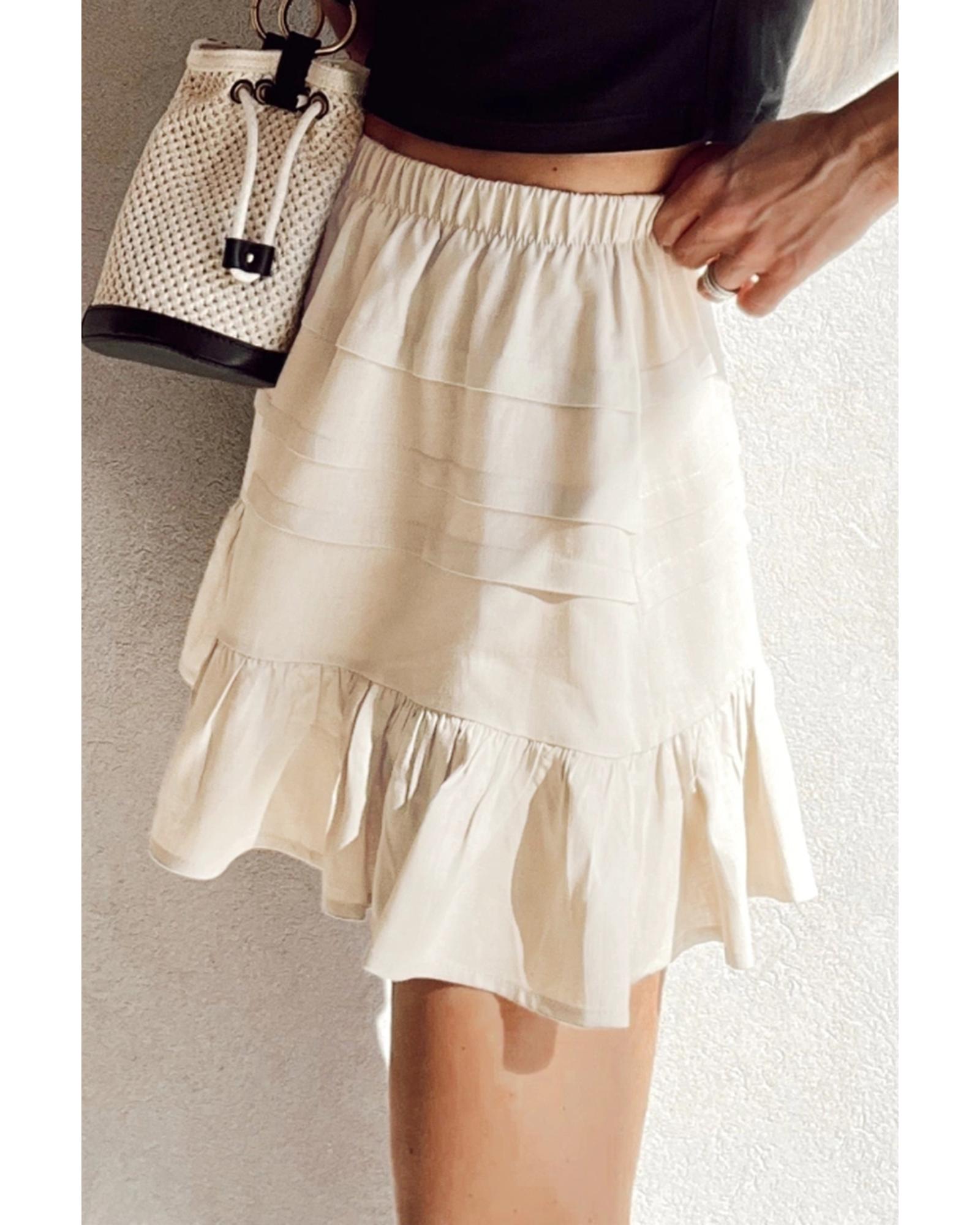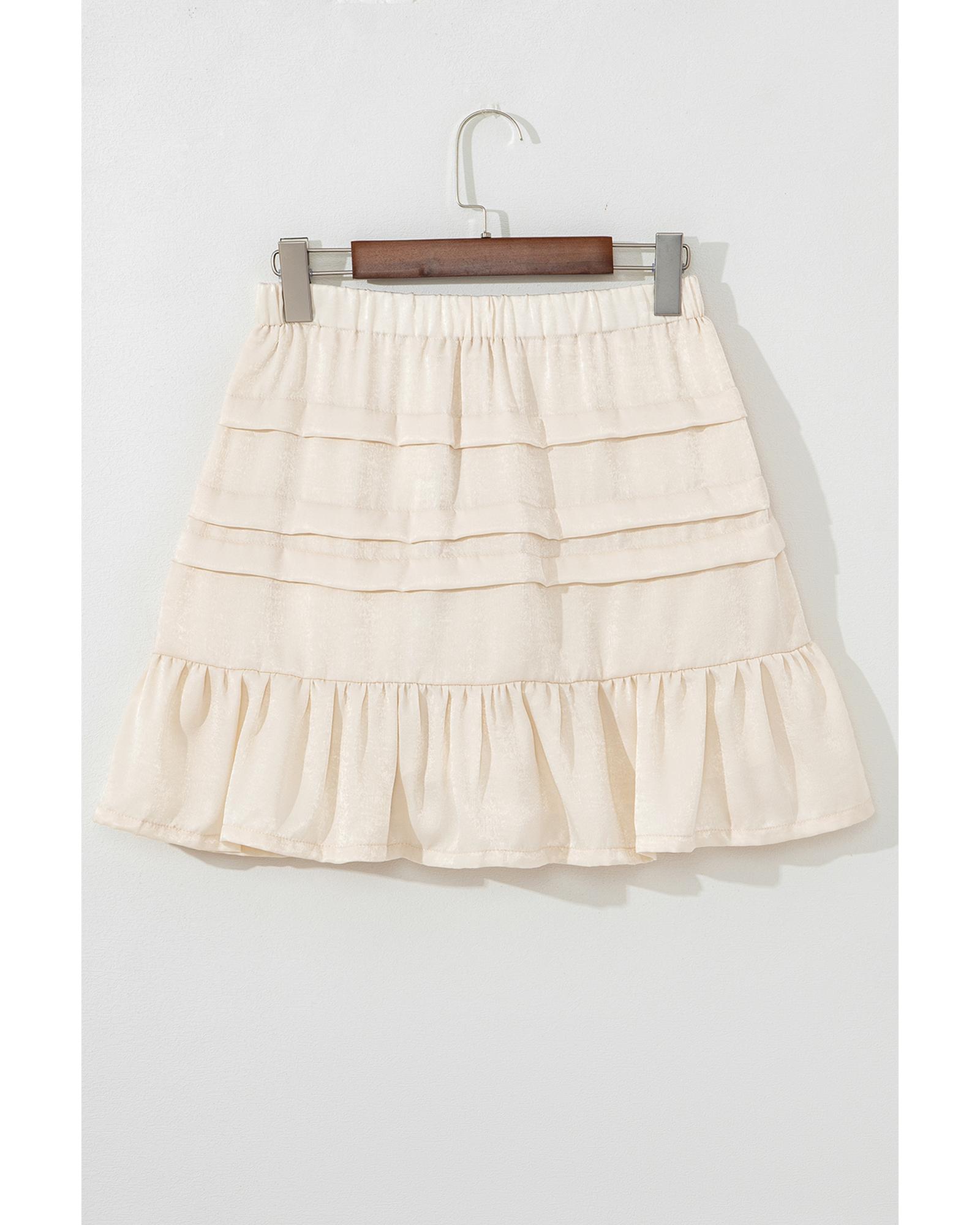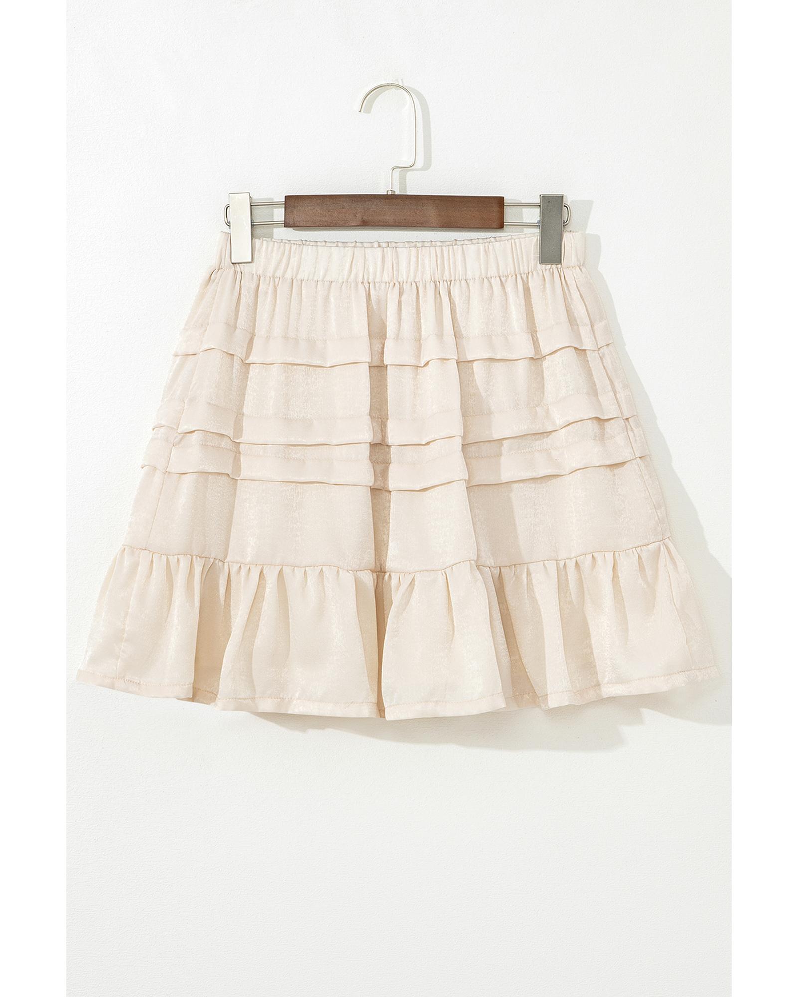 - Beige Tiered Ruffled Hemline Elastic Waist Mini Skirt