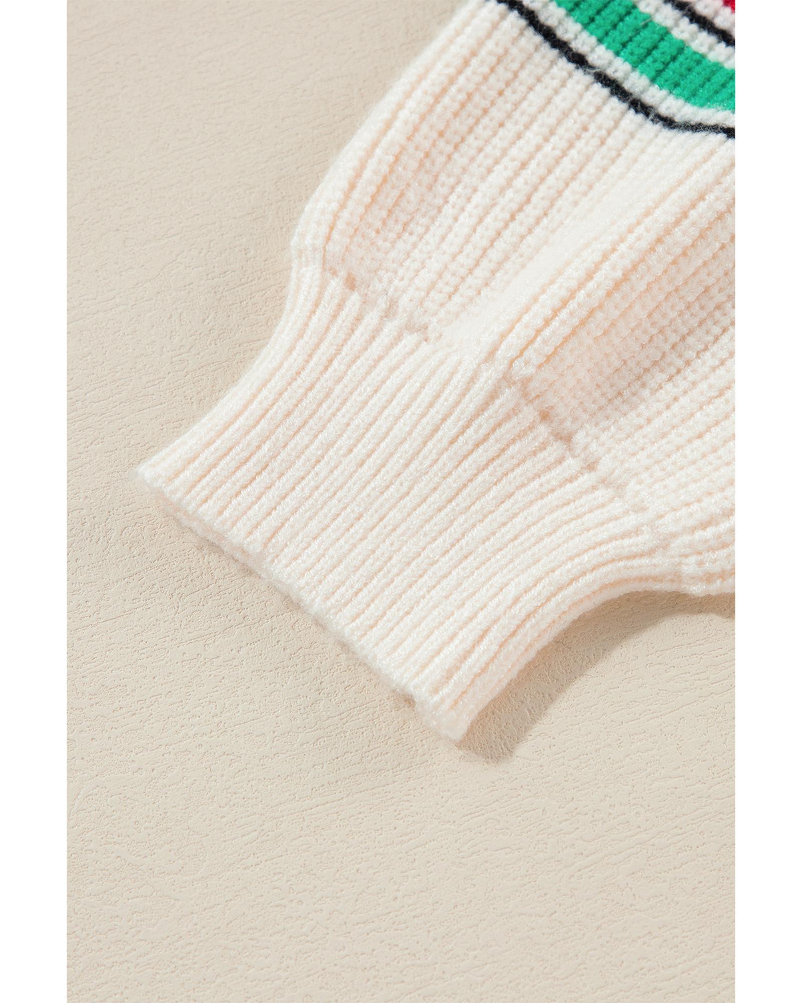 Beige Tinsel Holly Jolly Graphic Classic Sweater – M