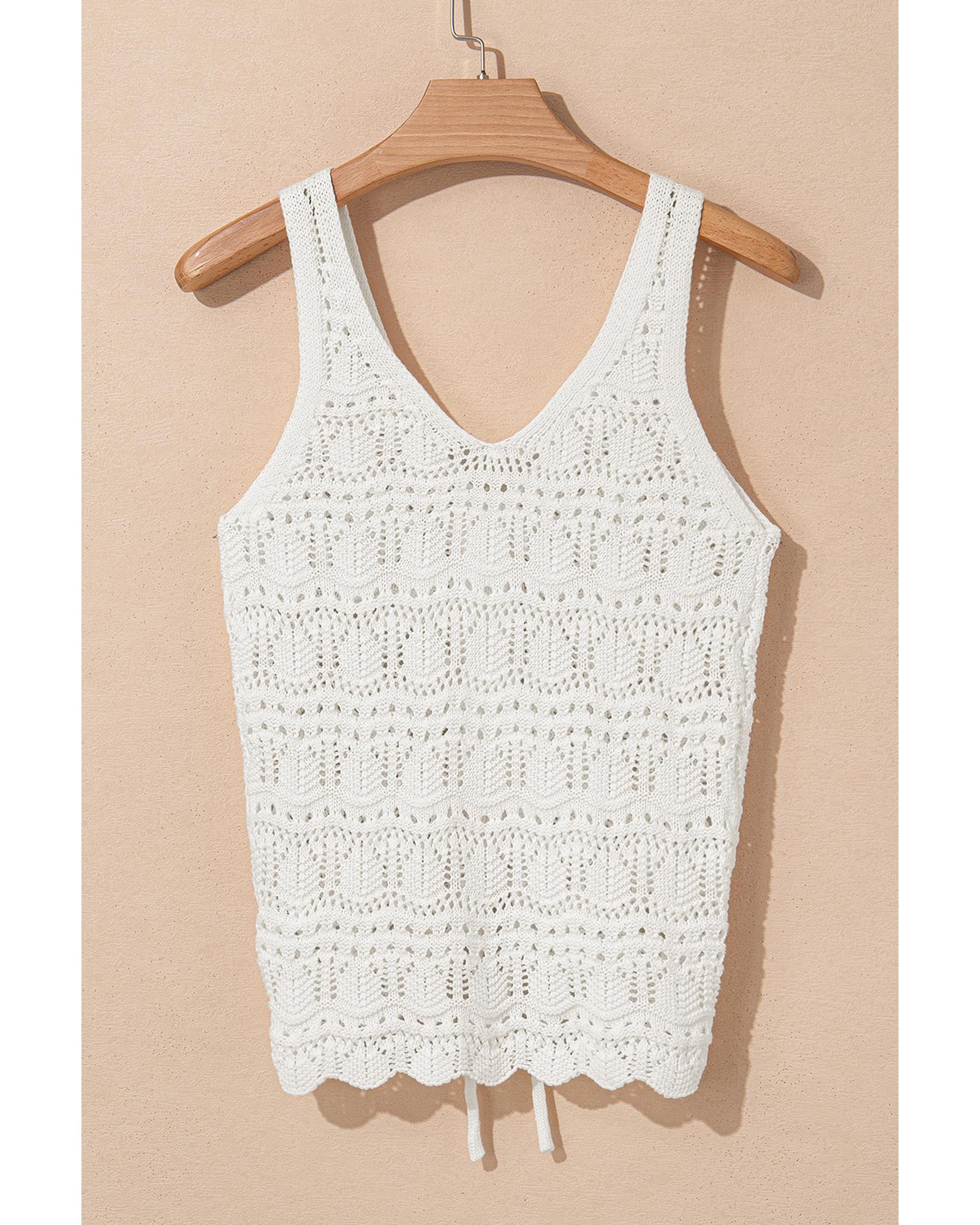 Beige Trendy Hollowed Knit V Neck Drawstring Sweater Vest – XL