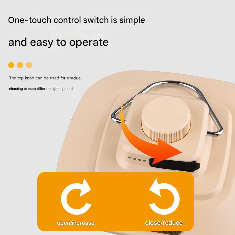 Beige Vintage LED Camping Lantern – Rechargeable, Stepless Dimming, Power Bank