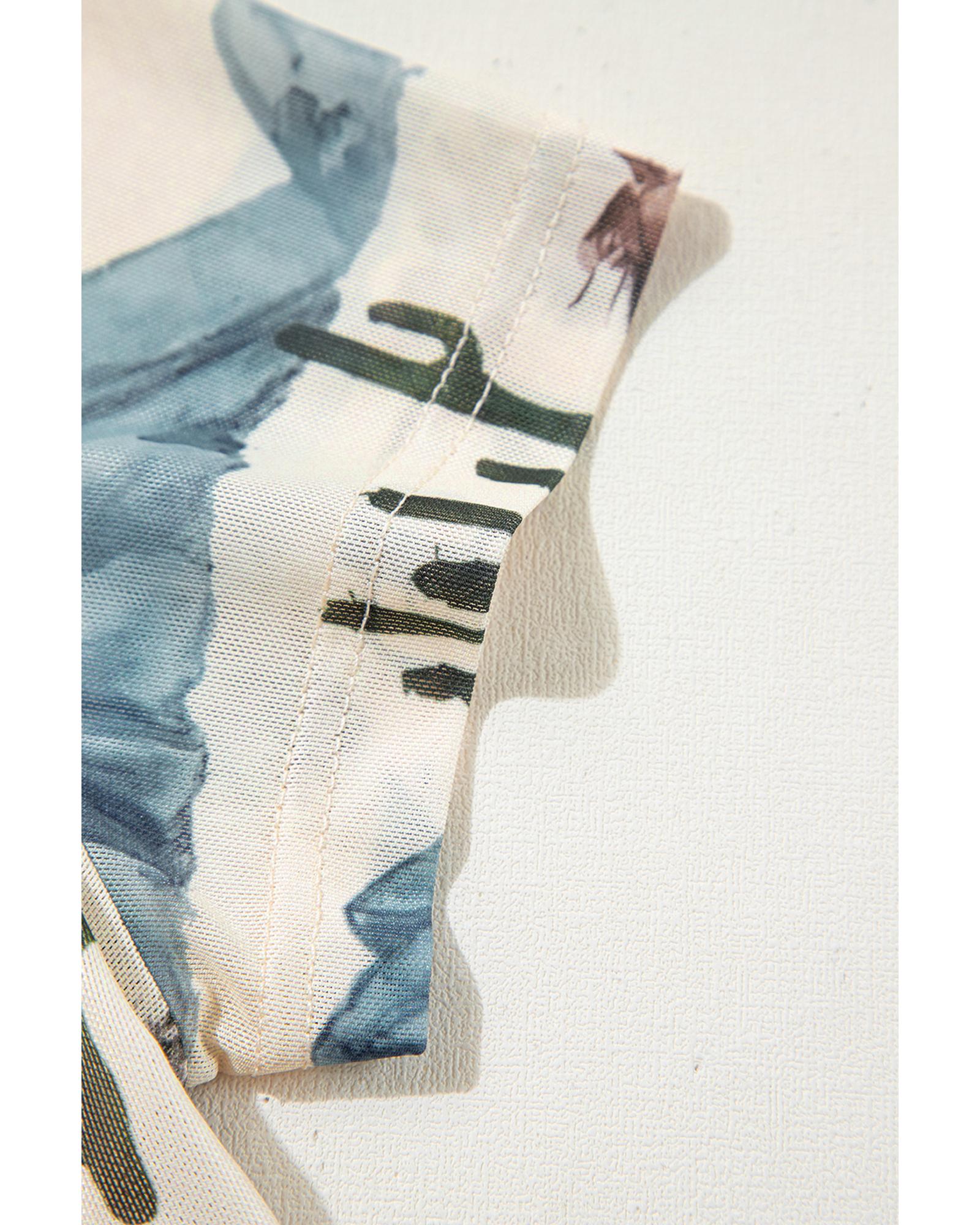 Beige Western Fashion Mustang River Printed Mesh T Shirt – L
