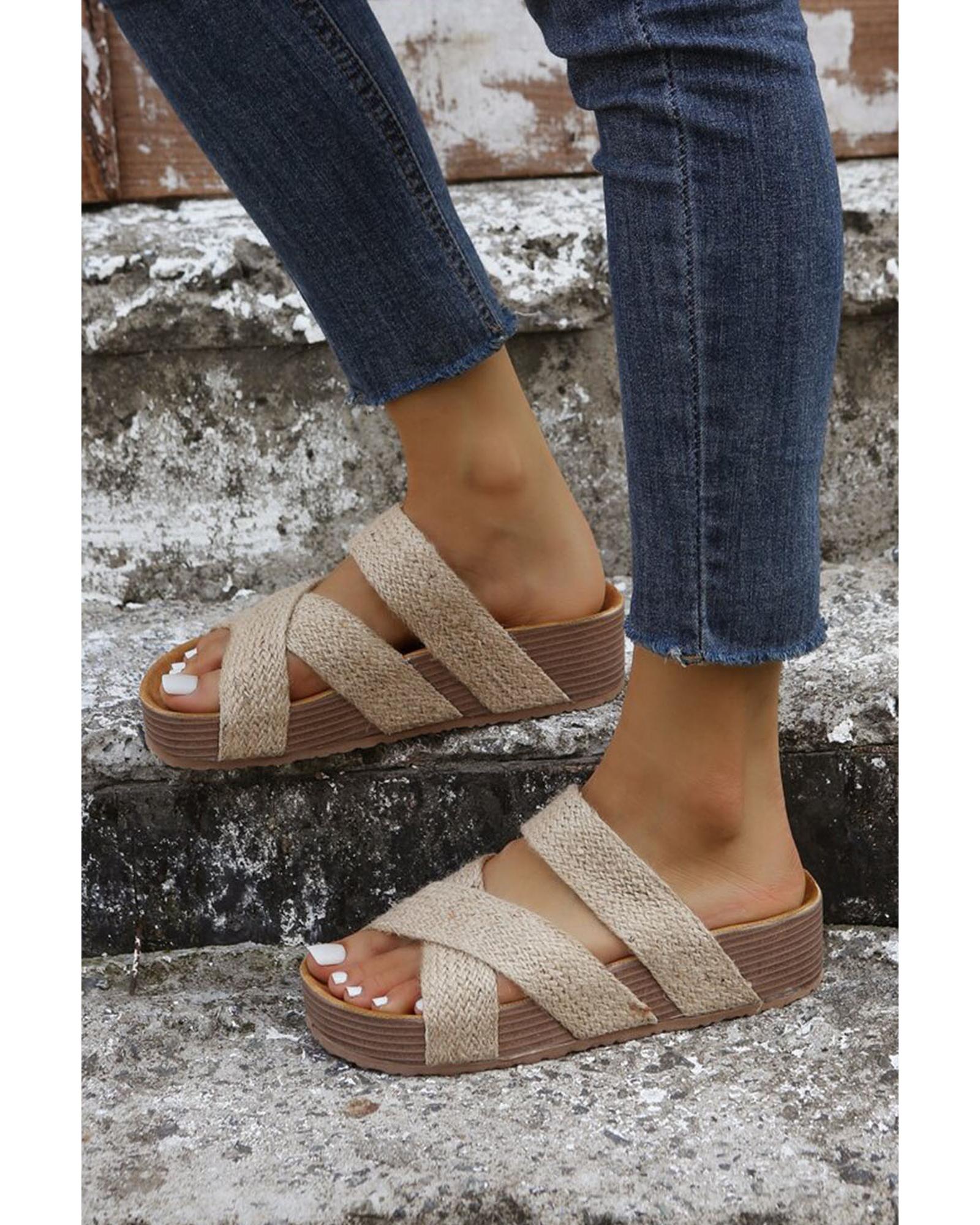 Beige Woven Cross Criss Hollowed Slip-On Slippers – 39 EU