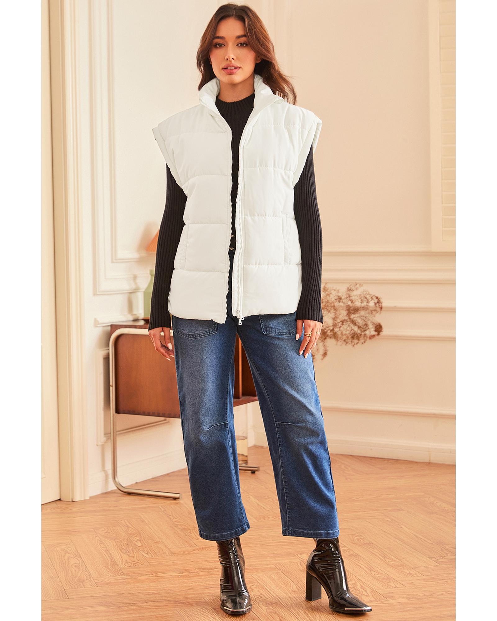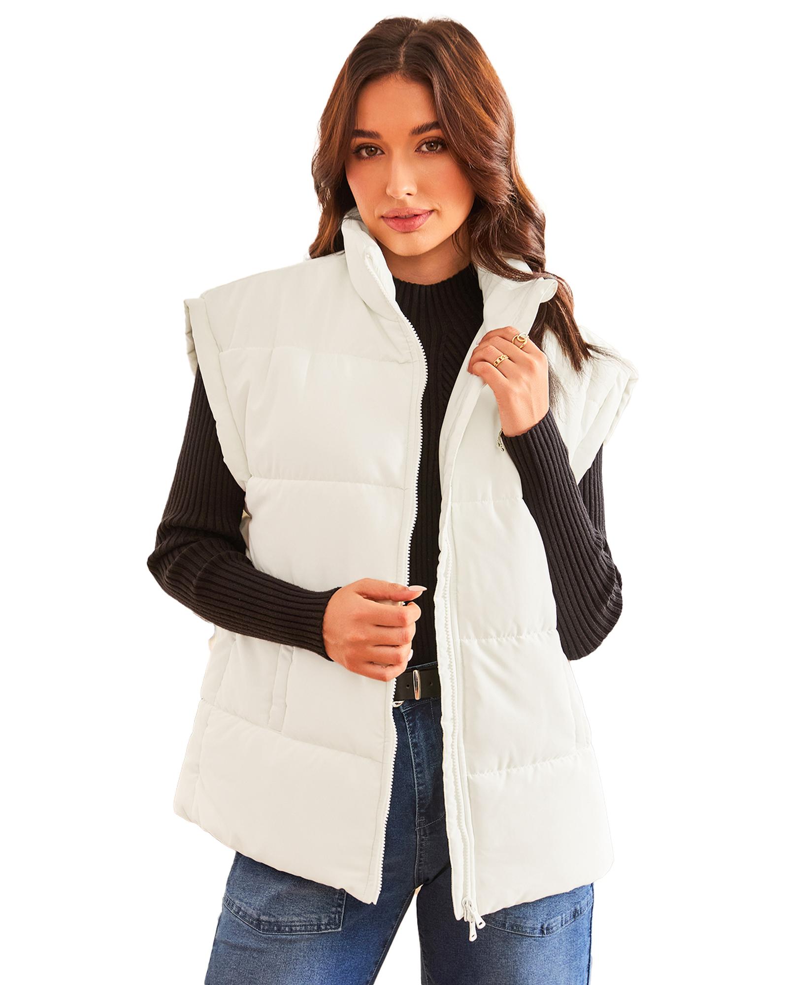 Beige Zipper Stand Neck Oversized Puffer Vest – XL