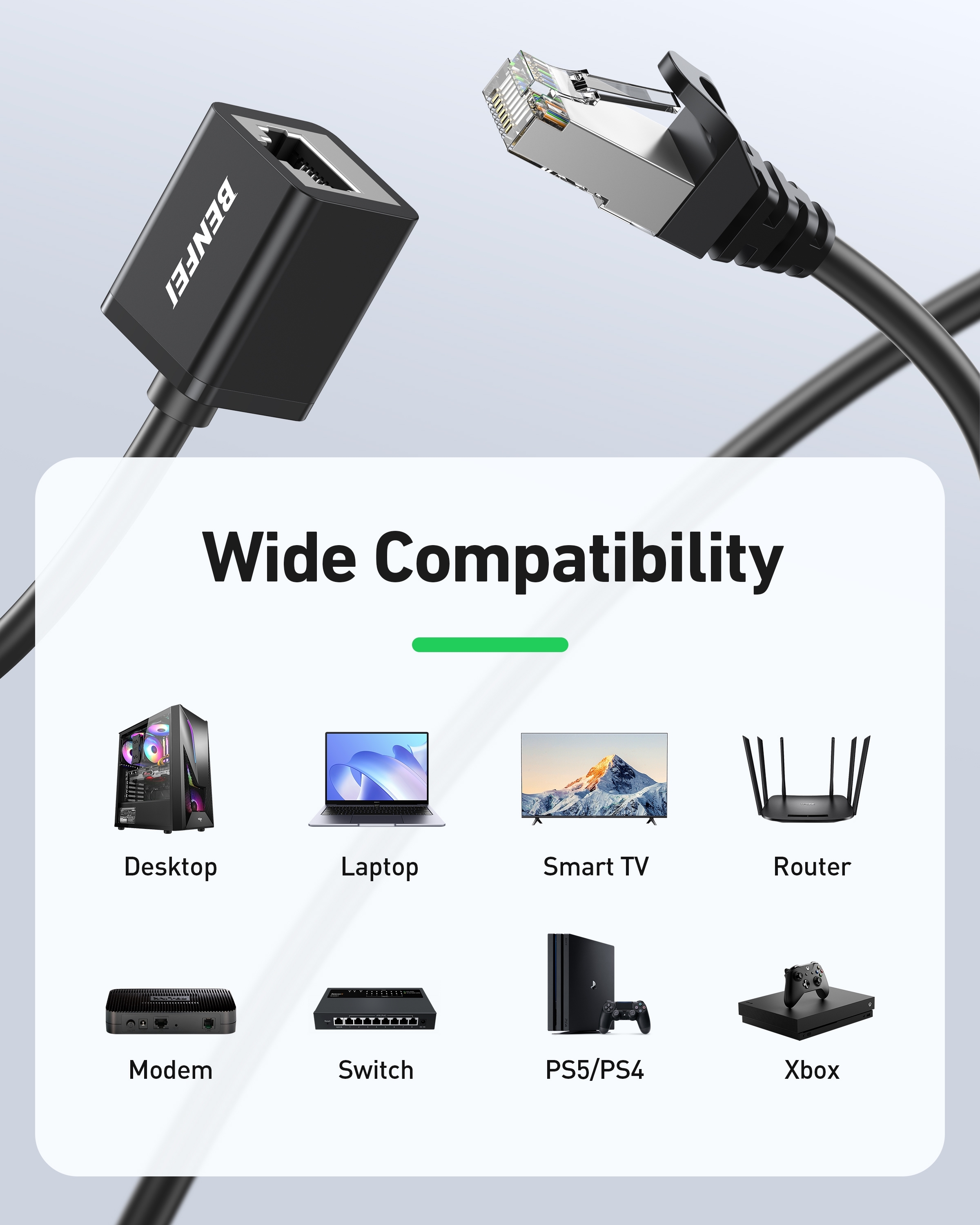 Compatible with routers, modems, gaming consoles like PS5 and Xbox, smart TVs, and other RJ45-enabled devices.