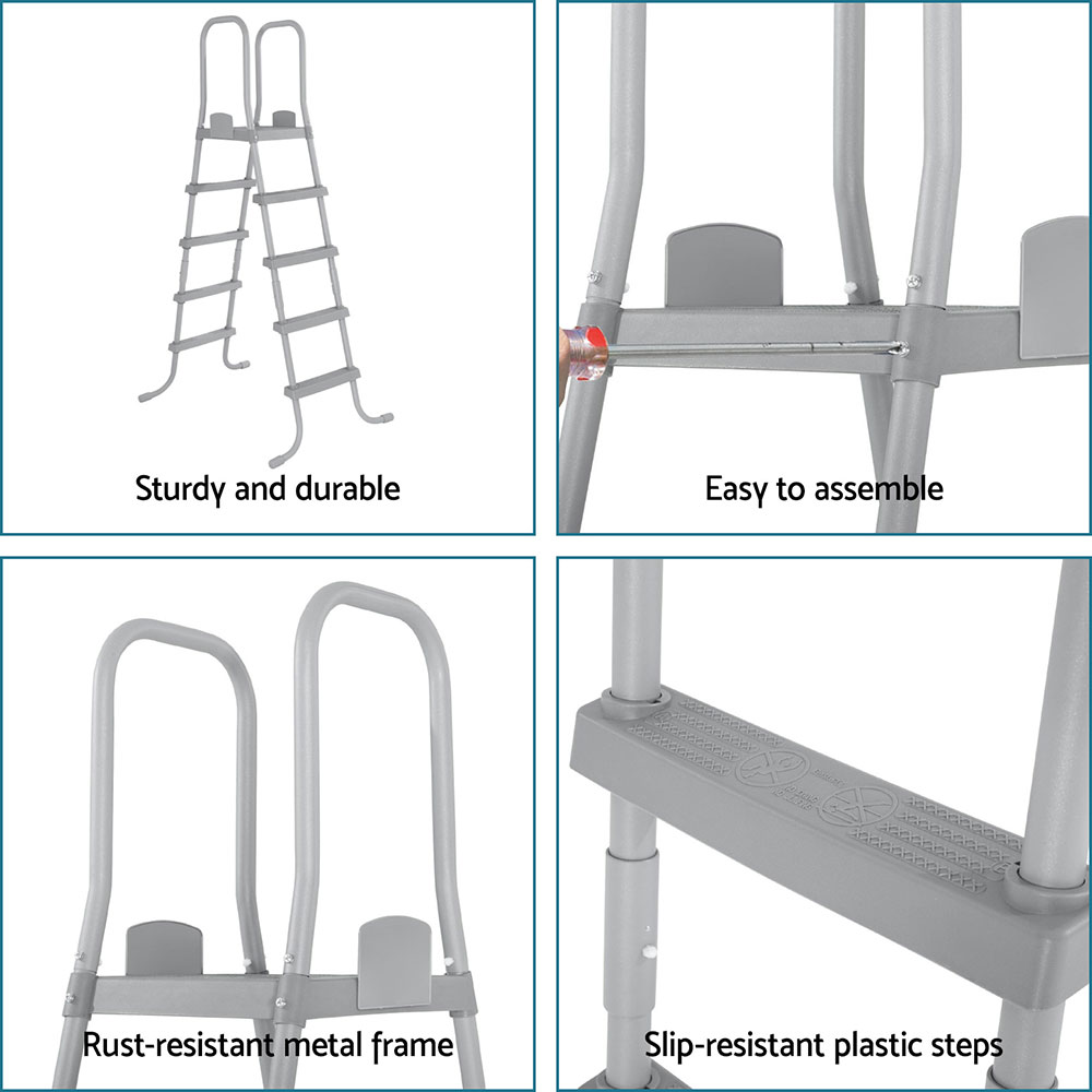 Featuring heavy duty plastic steps that are non-slip and removable, the pool ladder