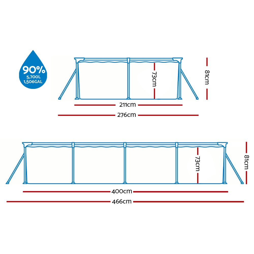 Bestway Swimming Pool 400x211x81cm Steel Frame Above Ground Pools w/ Filter Pump 5700L