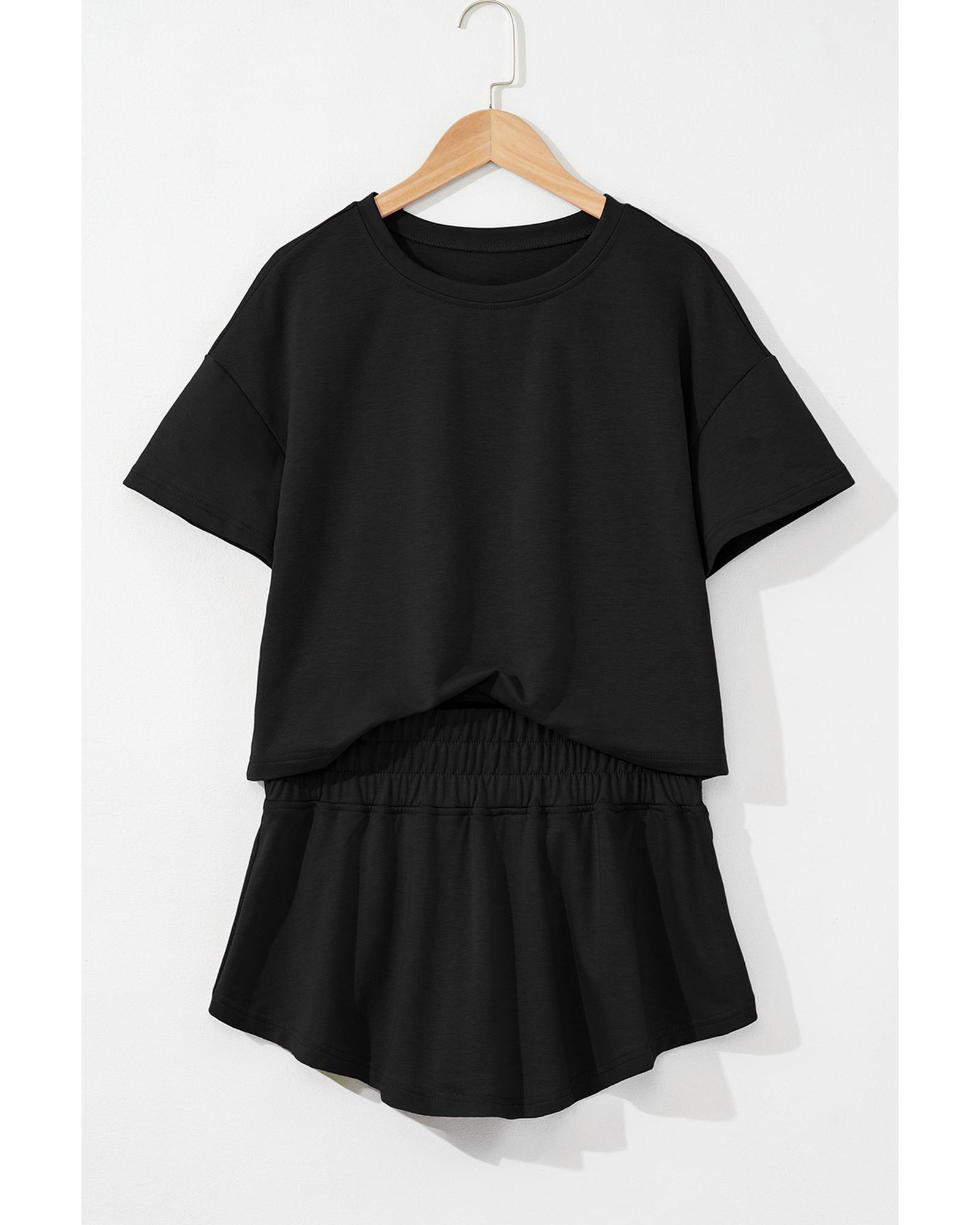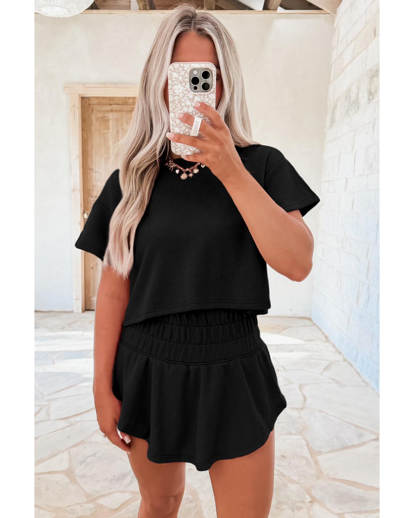 Black 2pcs Cropped Tee and Ruffle High Waist Skort Set – S