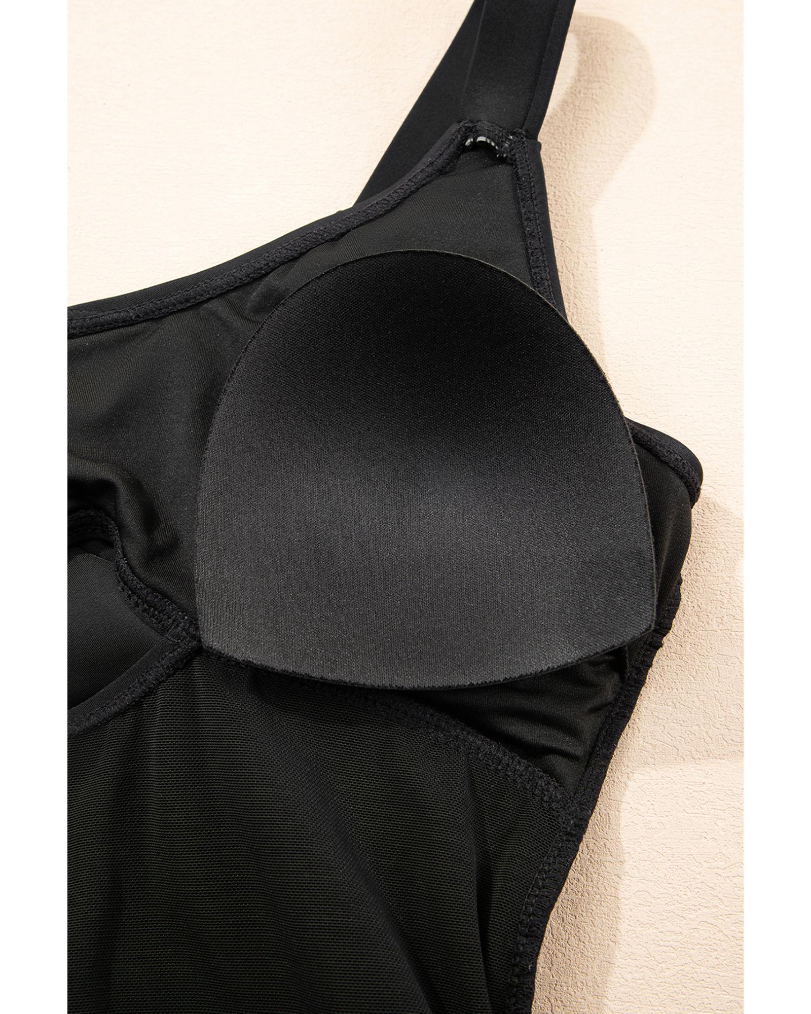 Black Adjustable Straps Cutout Ruched Knot Slit One Piece Swim Dress – XL