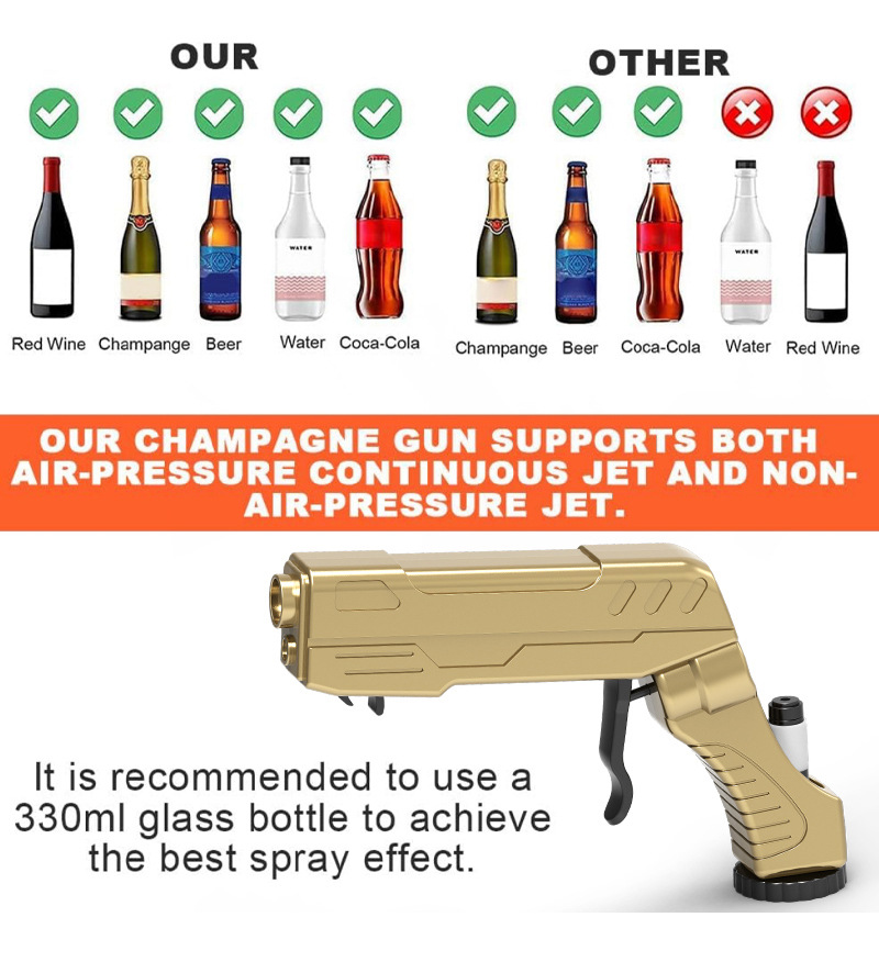 - Fun Drink Sprayer: Easily attaches to most champagne, sparkling wine, and beer bottles (check compatibility), allowing you to spray streams of your favourite beverage.