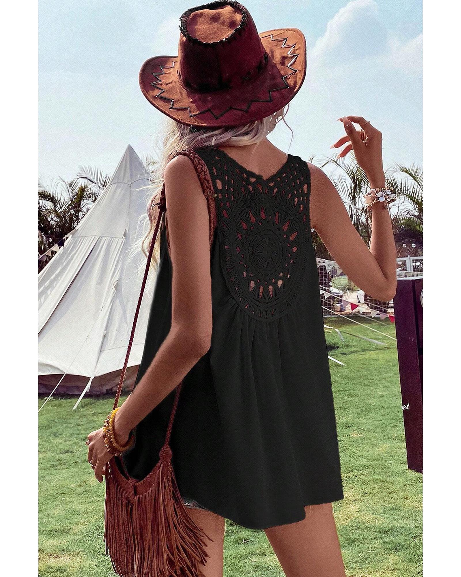- Black Bohemian Crochet Patchwork Sleeveless Tunic