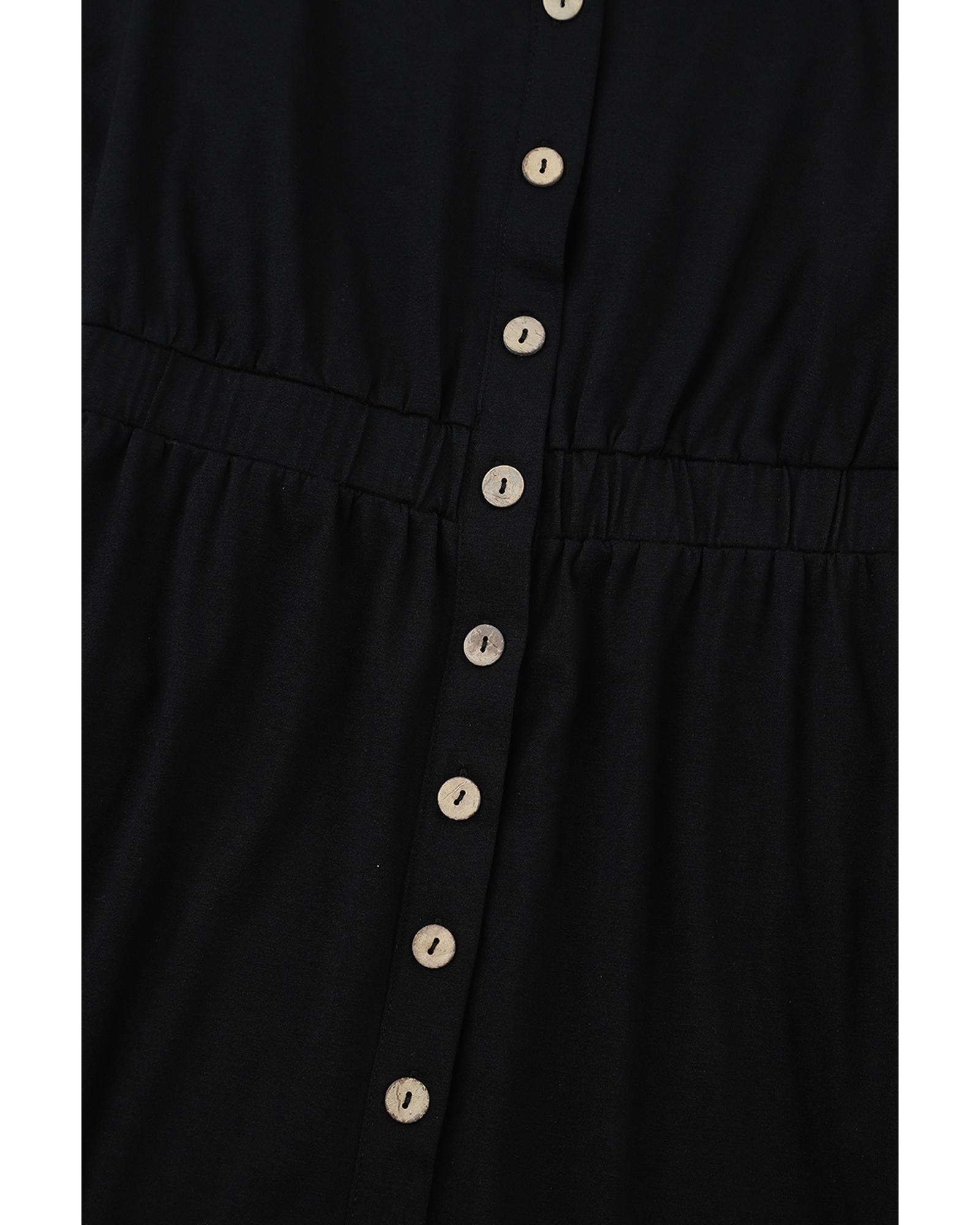 Black V Neck Hidden Pocket Splits Maxi T-shirt Dress - L
