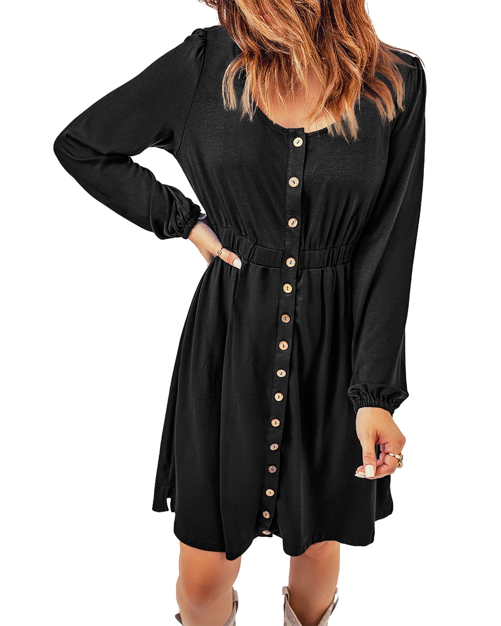- Black button up high waist long sleeve dress