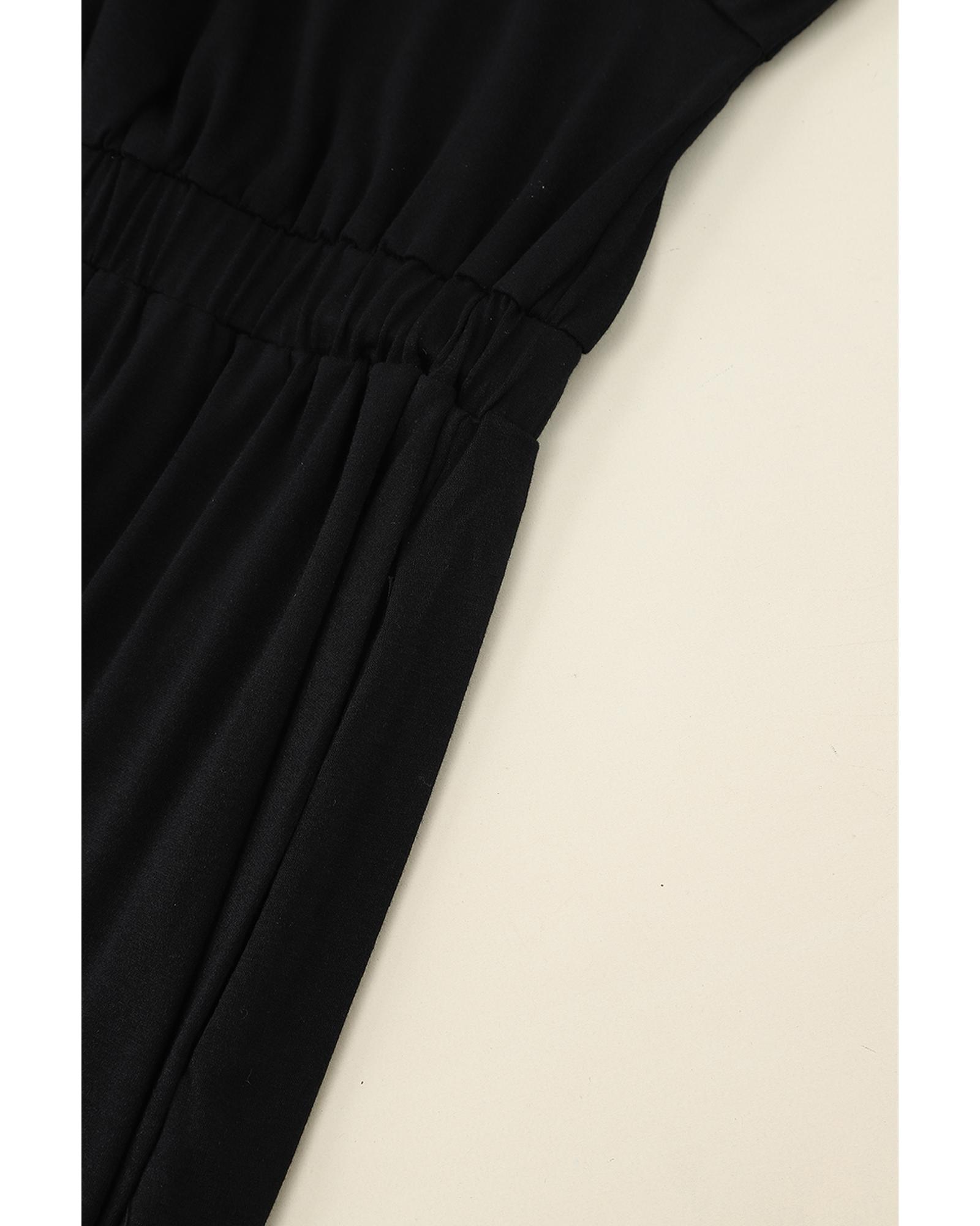 Blue Printed V Neck Shirred Short Puff Sleeve Maxi Dress - L