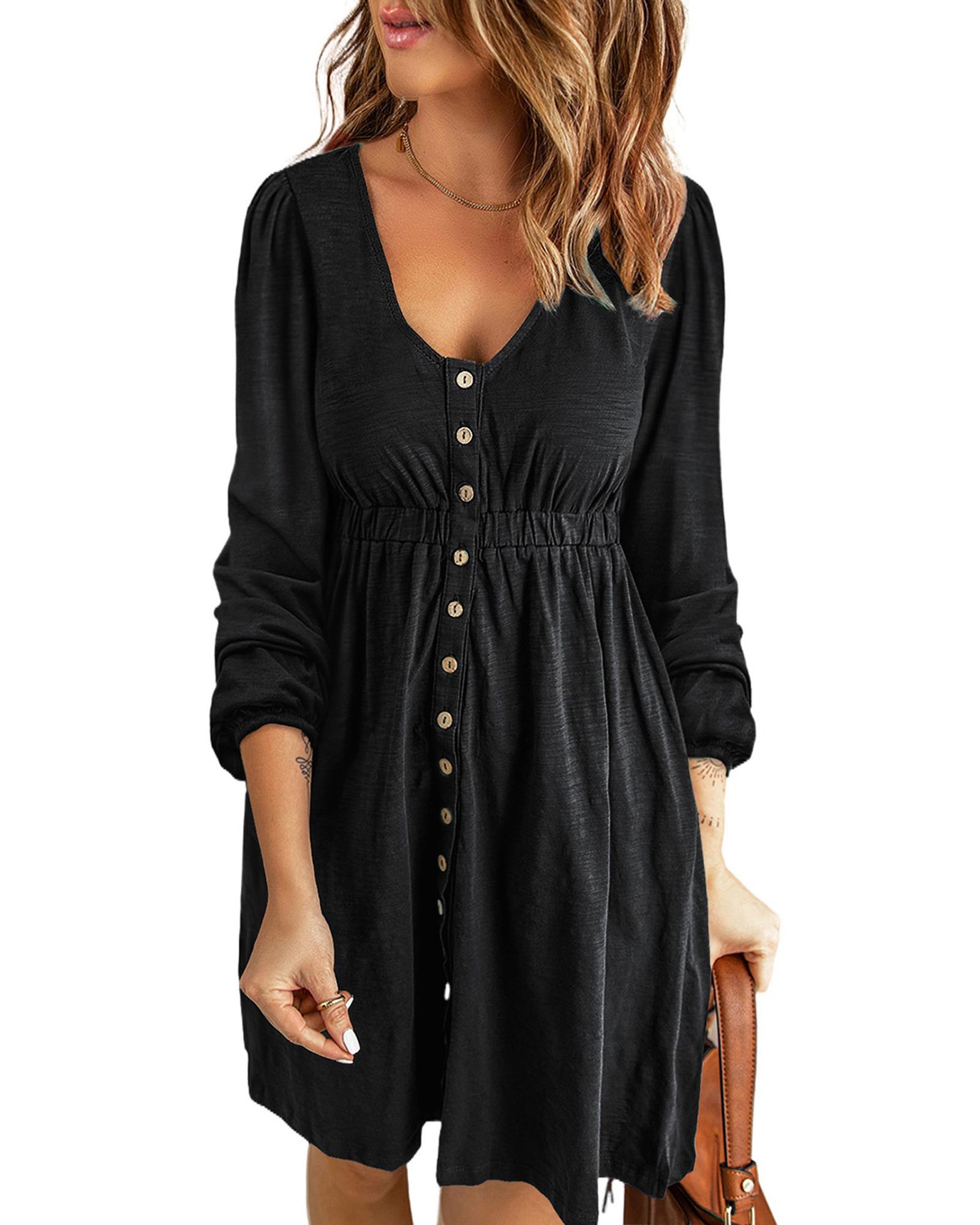 Orange Floral Print Tie Neck Long Sleeve Dress - L