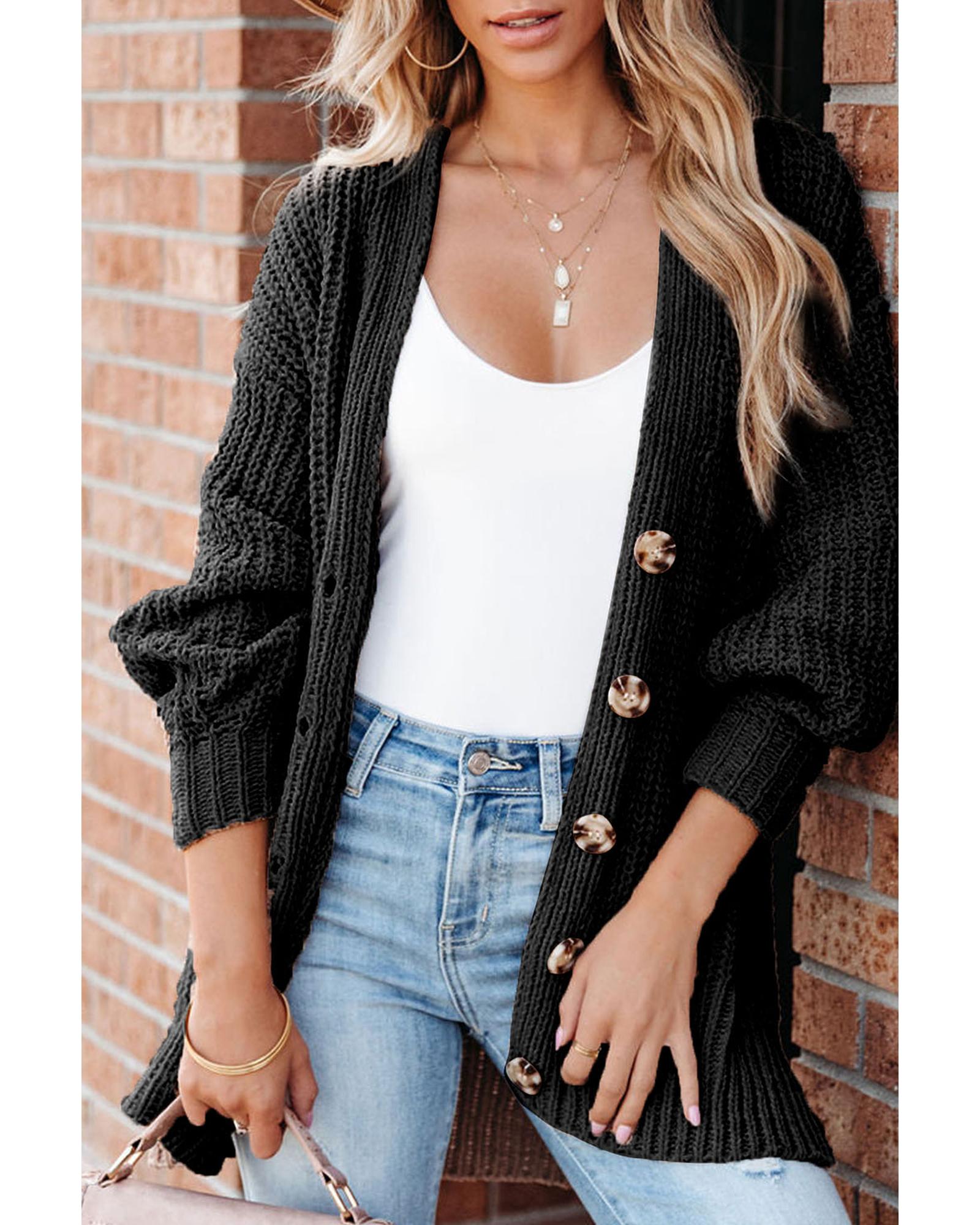 Black Buttoned Front Drop Shoulder Knitted Cardigan – S