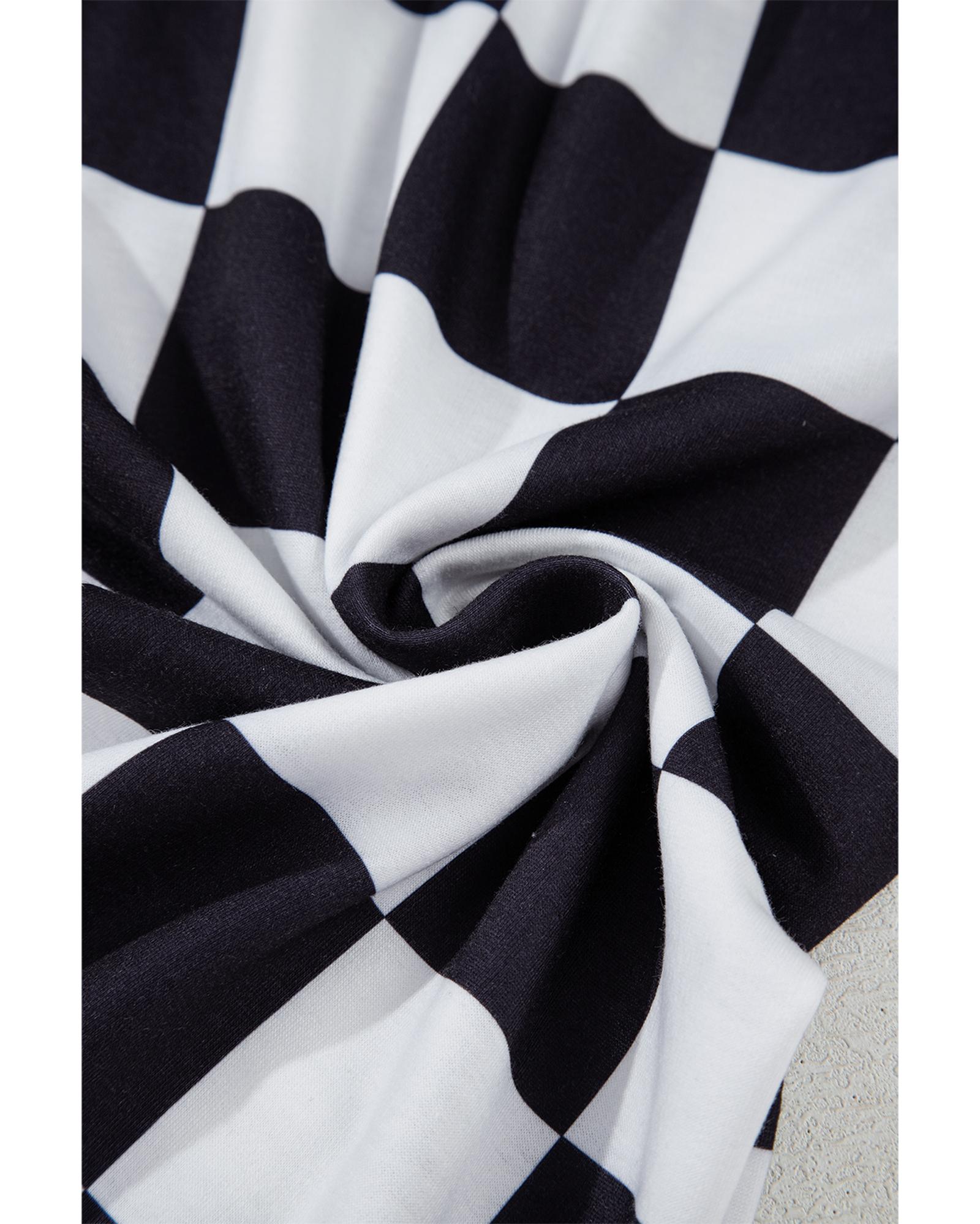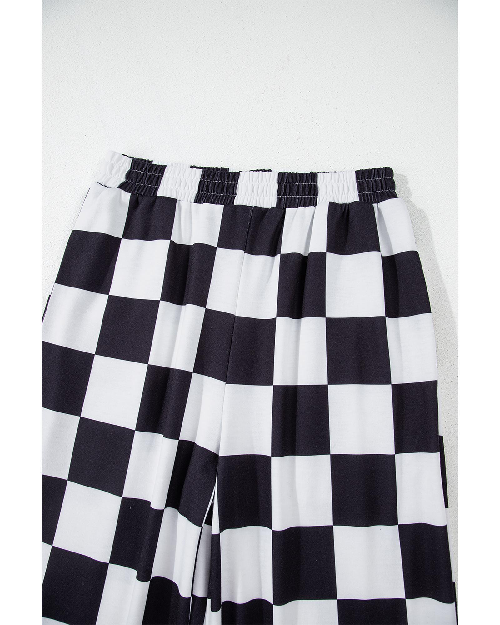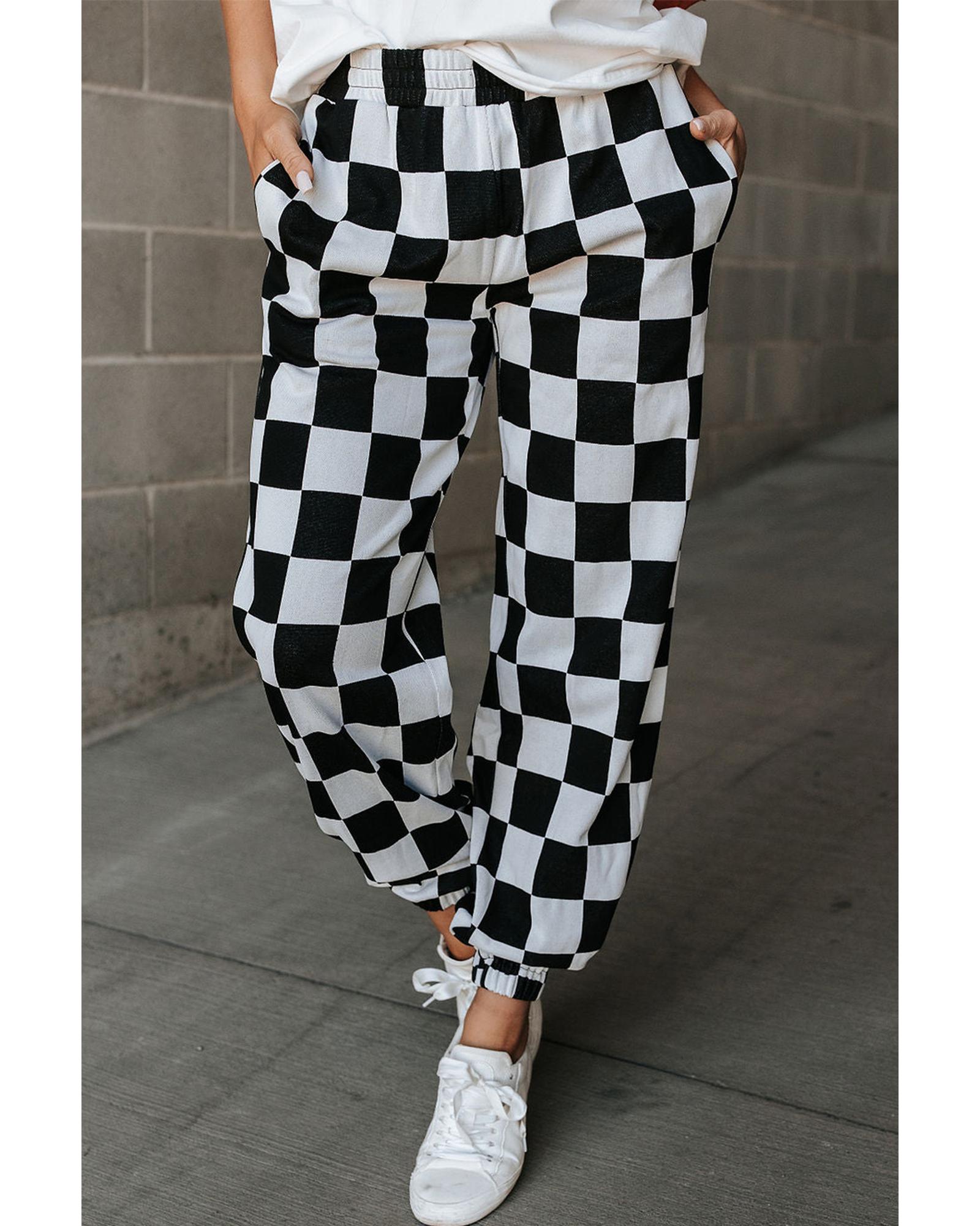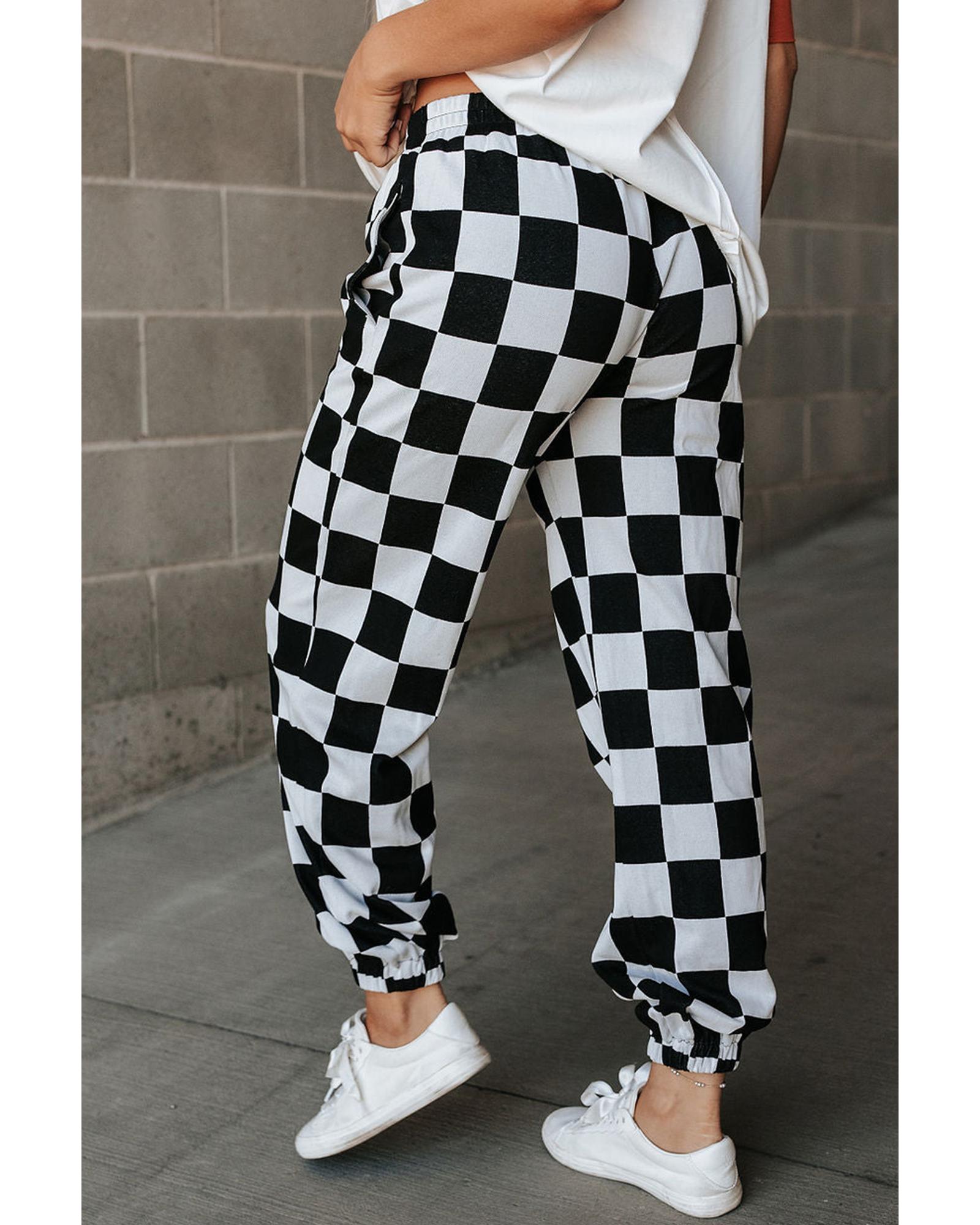 • Black Checkerboard Elastic Waist Pocketed Joggers