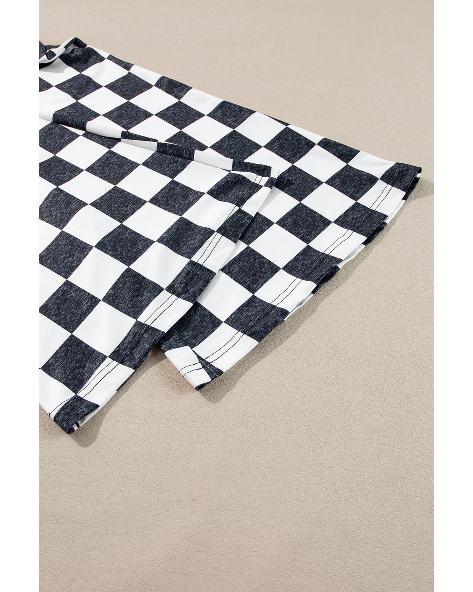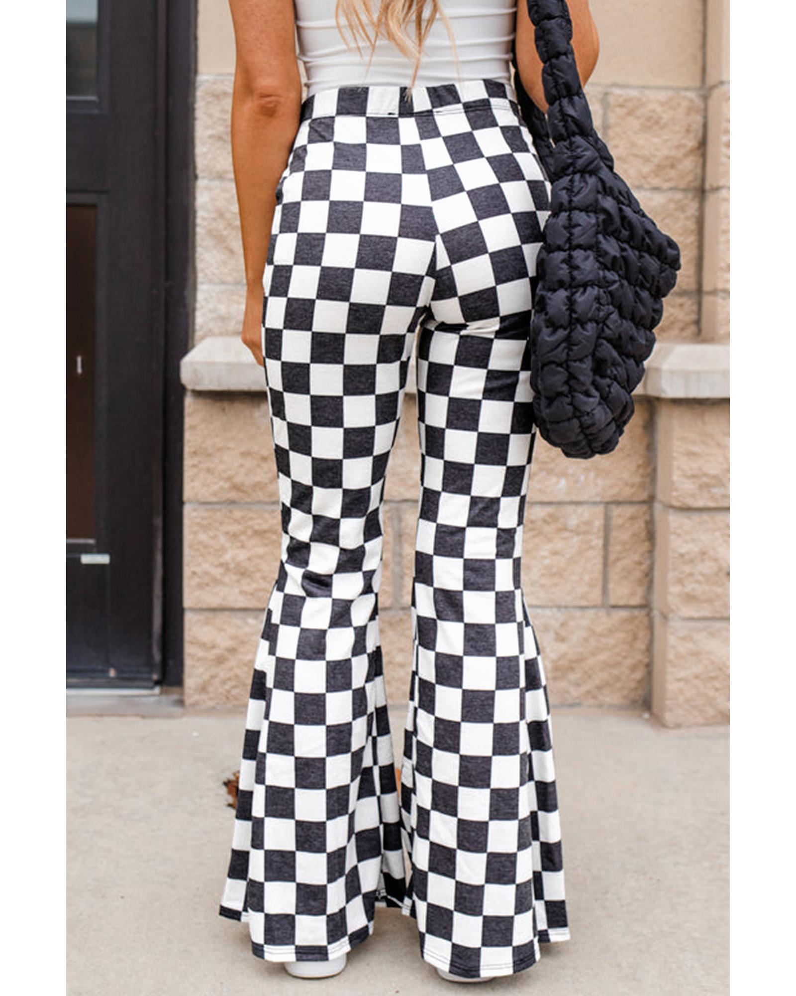 - Black Checkerboard High Rise Casual Flared Pants