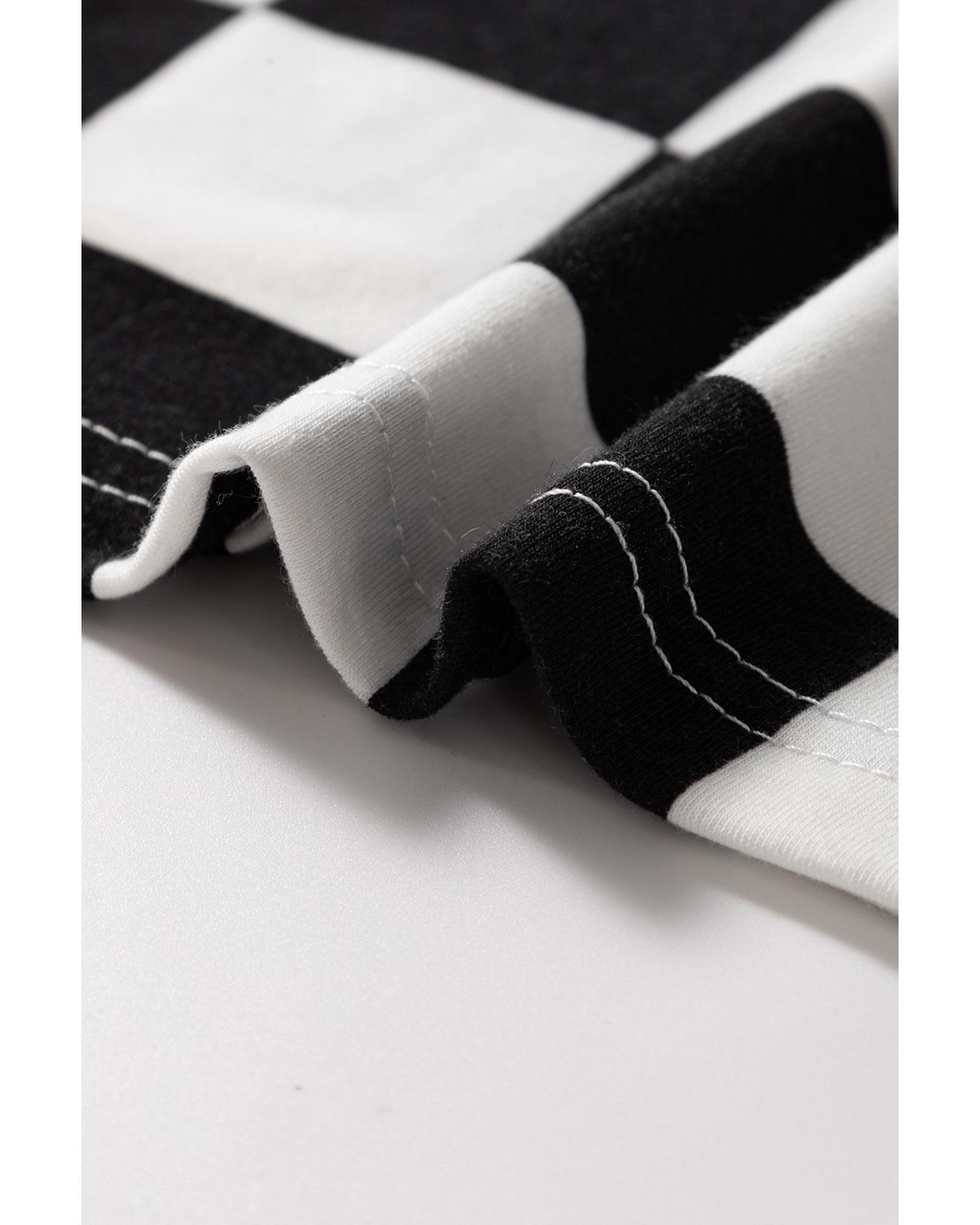 Black Checkered Pattern Tee and Shorts Plus Size Two Piece Set – 1X