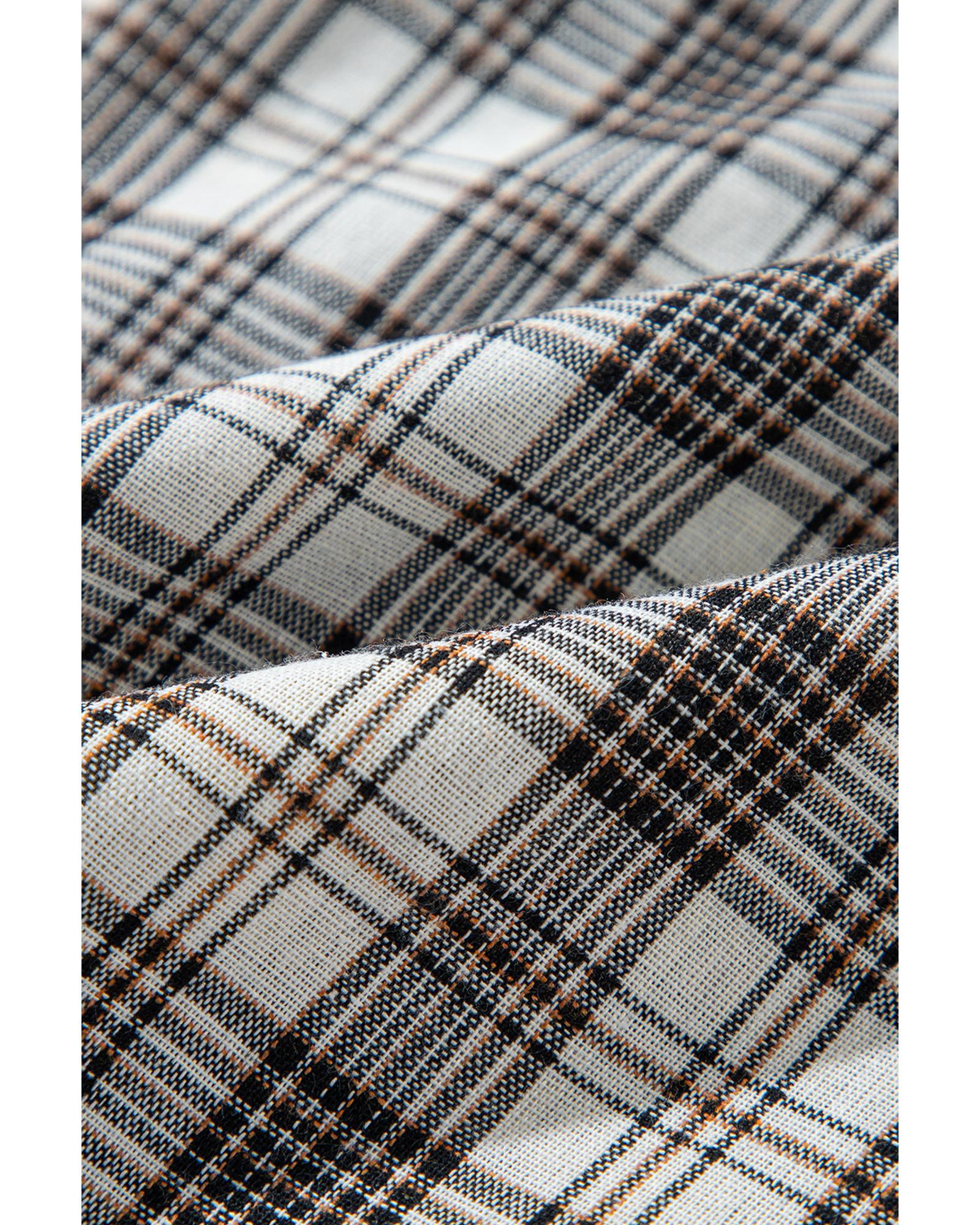 Black Checkered Print Loose Fit Buttoned Hooded Shacket – XL
