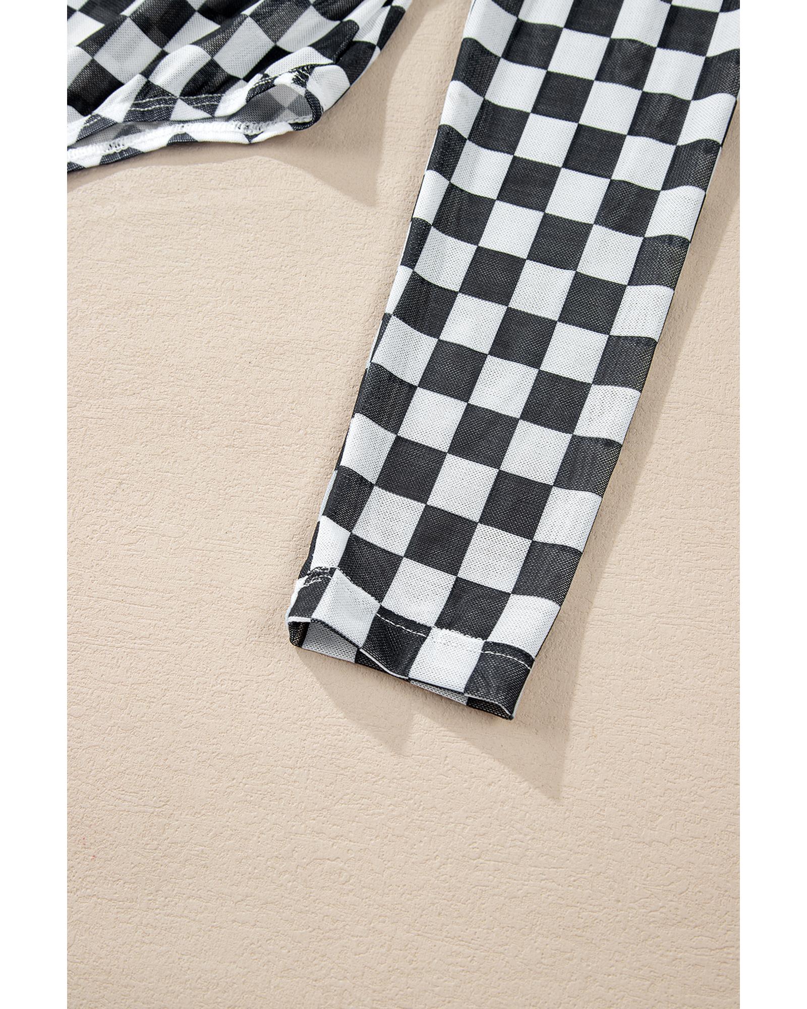 - Black checkered printed bodysuit