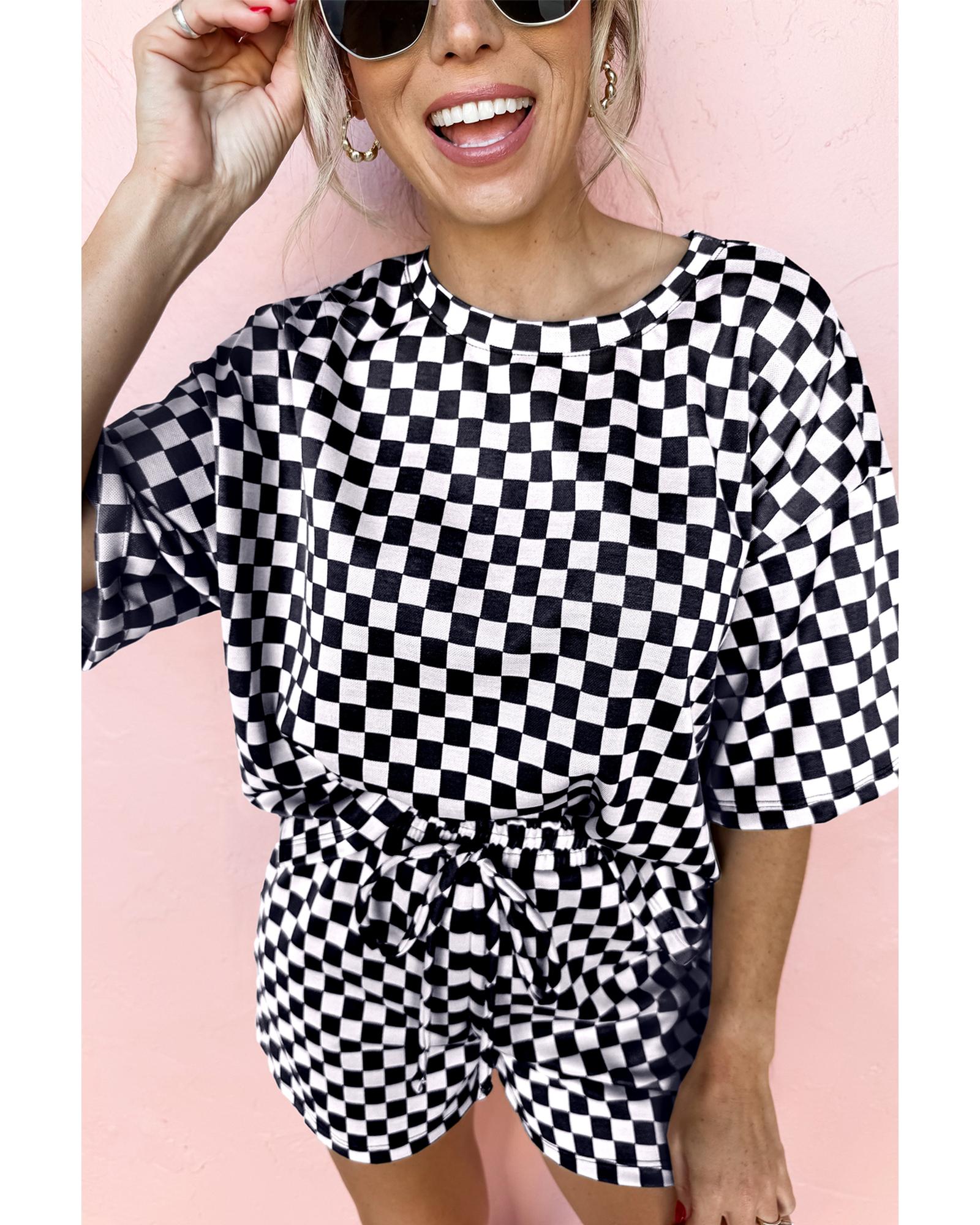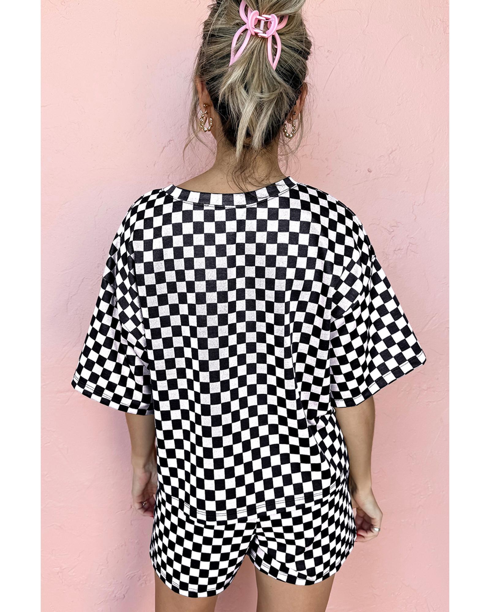 Red Stripe Buttoned V Neck Top and Knotted Waist Pants Lounge Set - M