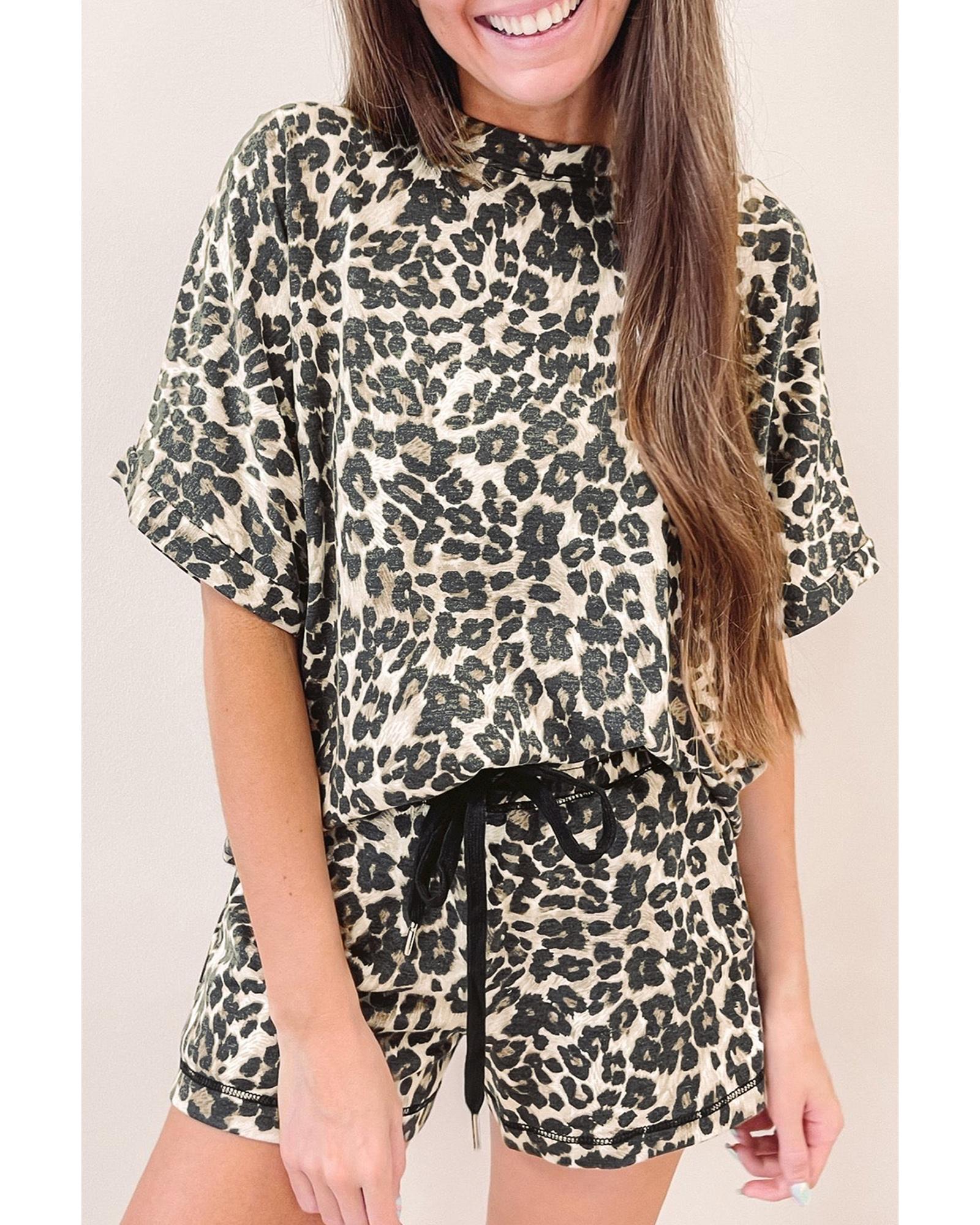Black Cheetah Printed Casual Tee and Shorts Lounge Set – L
