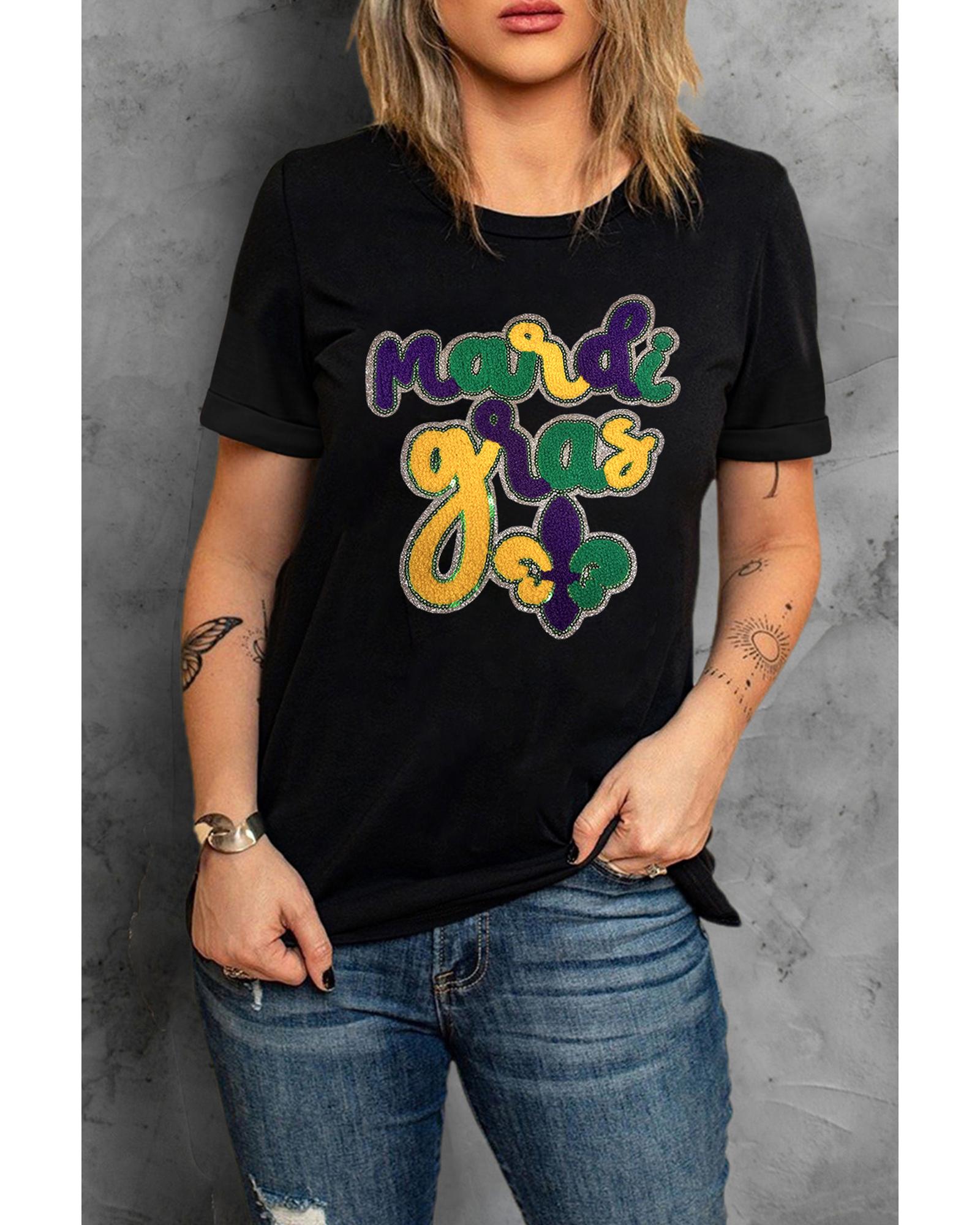 • Black Chenille Mardi Gras Letter Graphic Tee