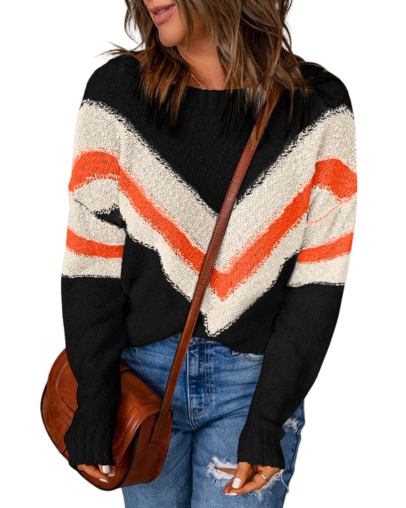 Multicolor Colorblock Textured Drop Shoulder Sweater - 2XL