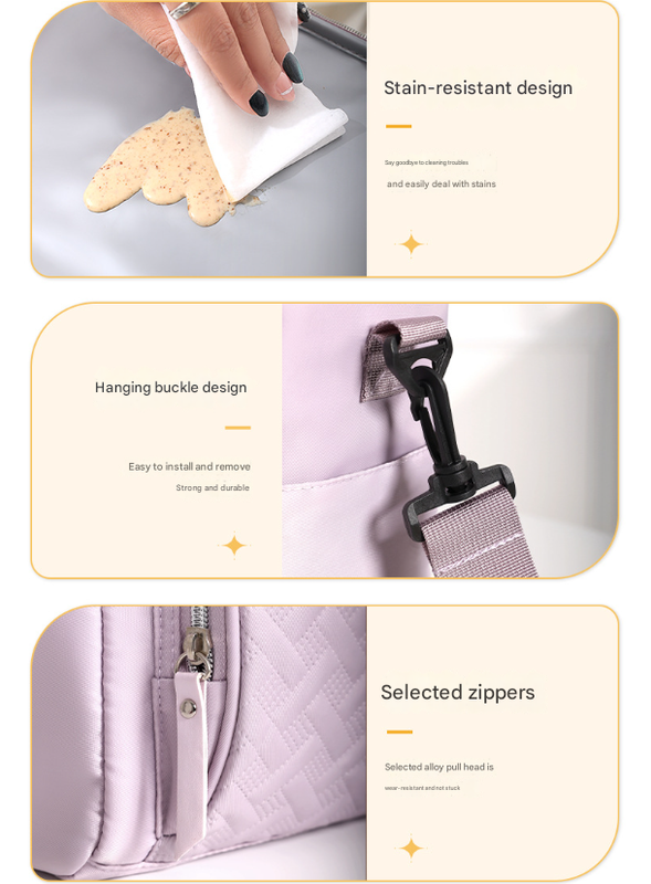 - Convenient Storage Pockets: Includes a stylish quilted zippered front pocket, perfect for storing utensils, napkins, or small personal items like your phone. Also features two side slip pockets for additional storage like water bottles or small accessories.