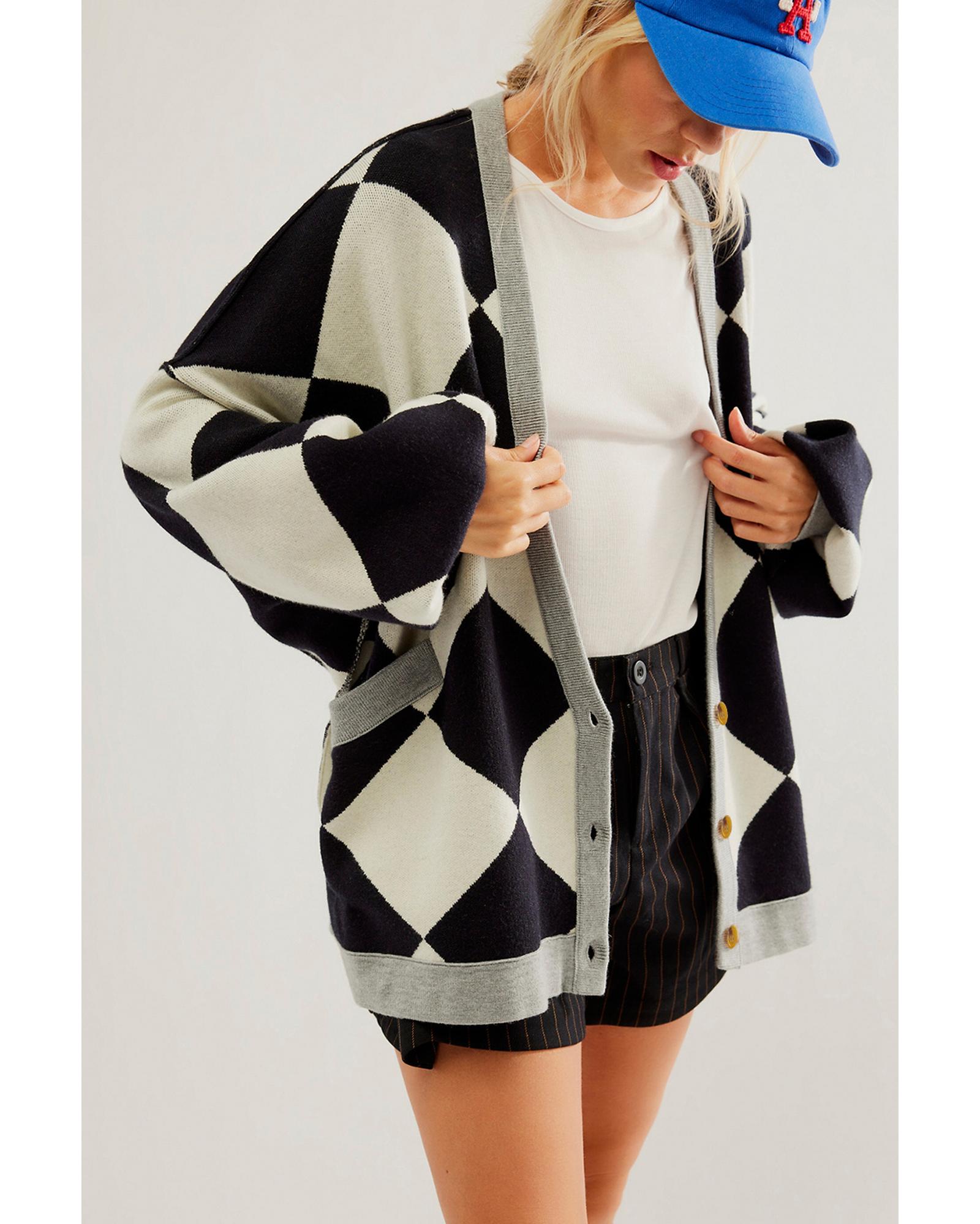 Black Colorblock Drop Shoulder Buttoned Loose Cardigan – S
