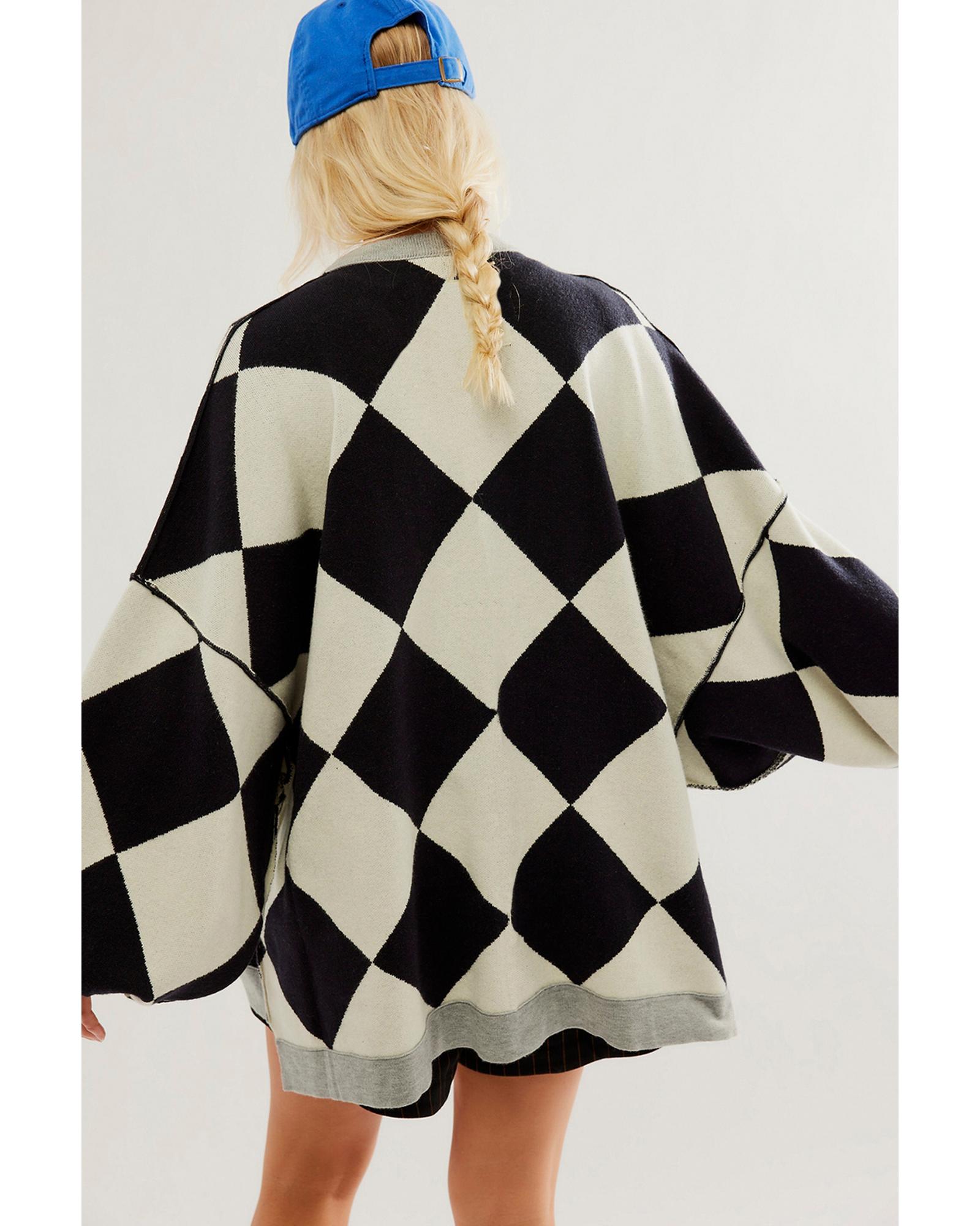 Black Colorblock Drop Shoulder Buttoned Loose Cardigan – XL