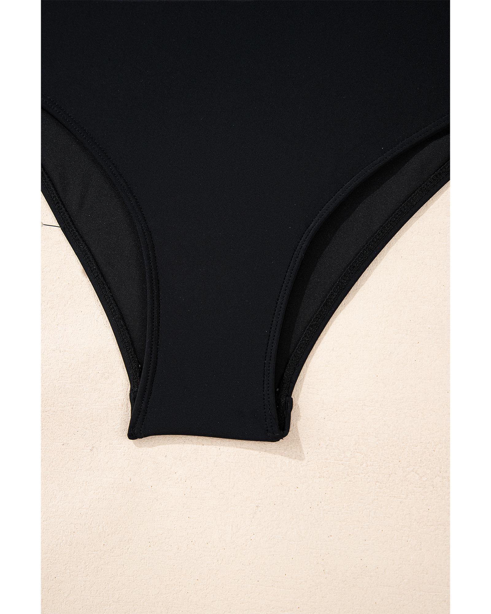 Black Colorblock Edge Belted One Piece Swimsuit – L