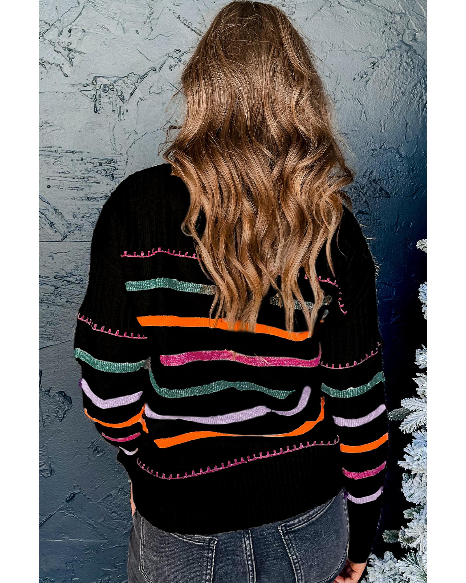 Black Hollow-out Cable Knit Cropped Sweater - XL