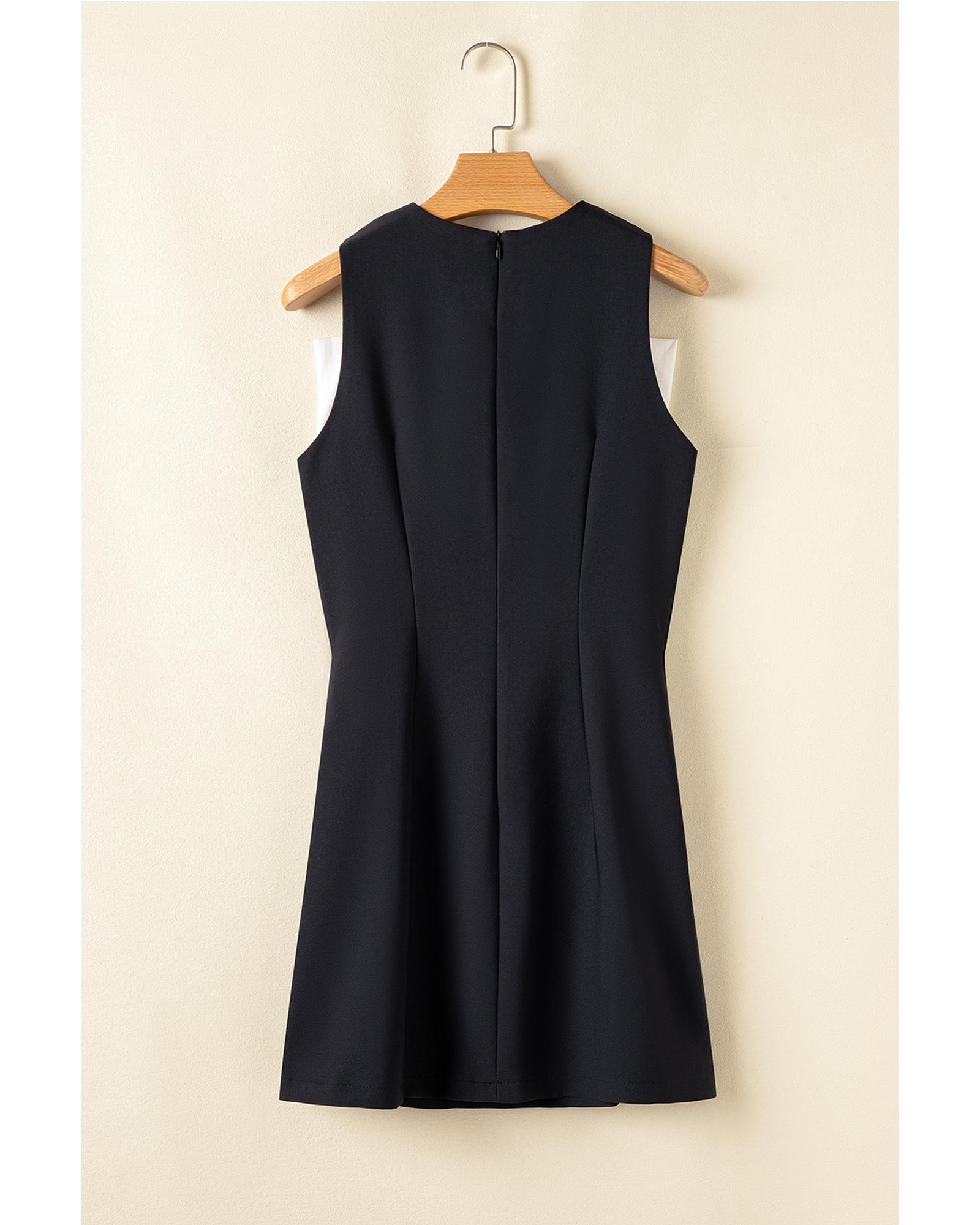 Black Contrast Bowknot Applique Crew Neck Sleeveless Mini Dress – XL