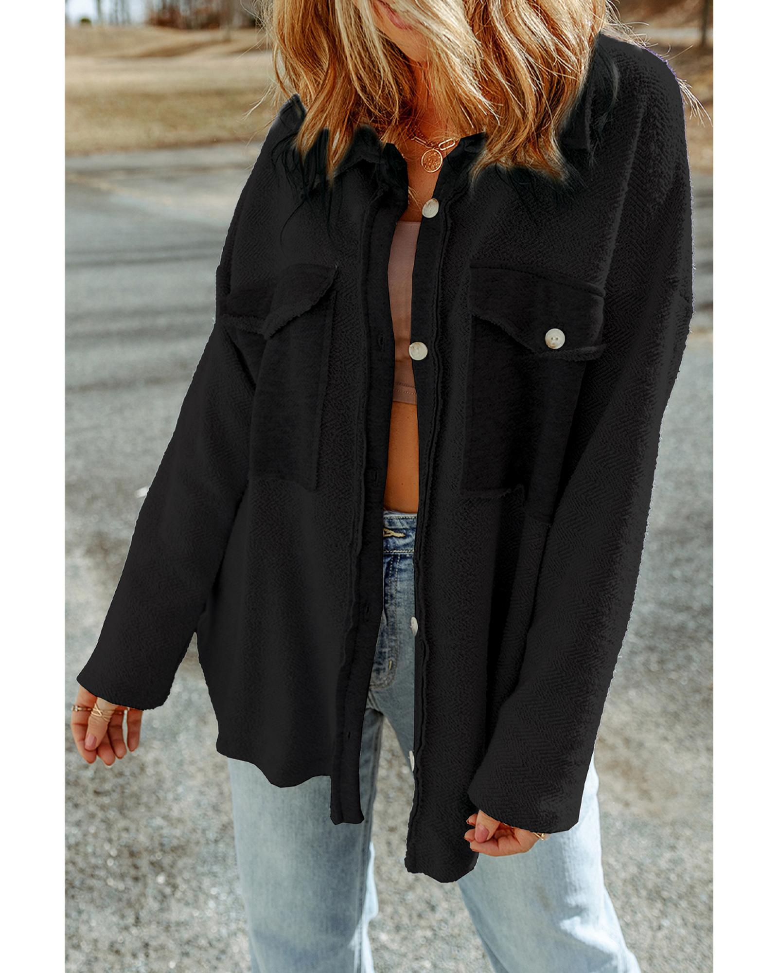 Black Contrast Flap Pockets Relaxed Shacket – XL