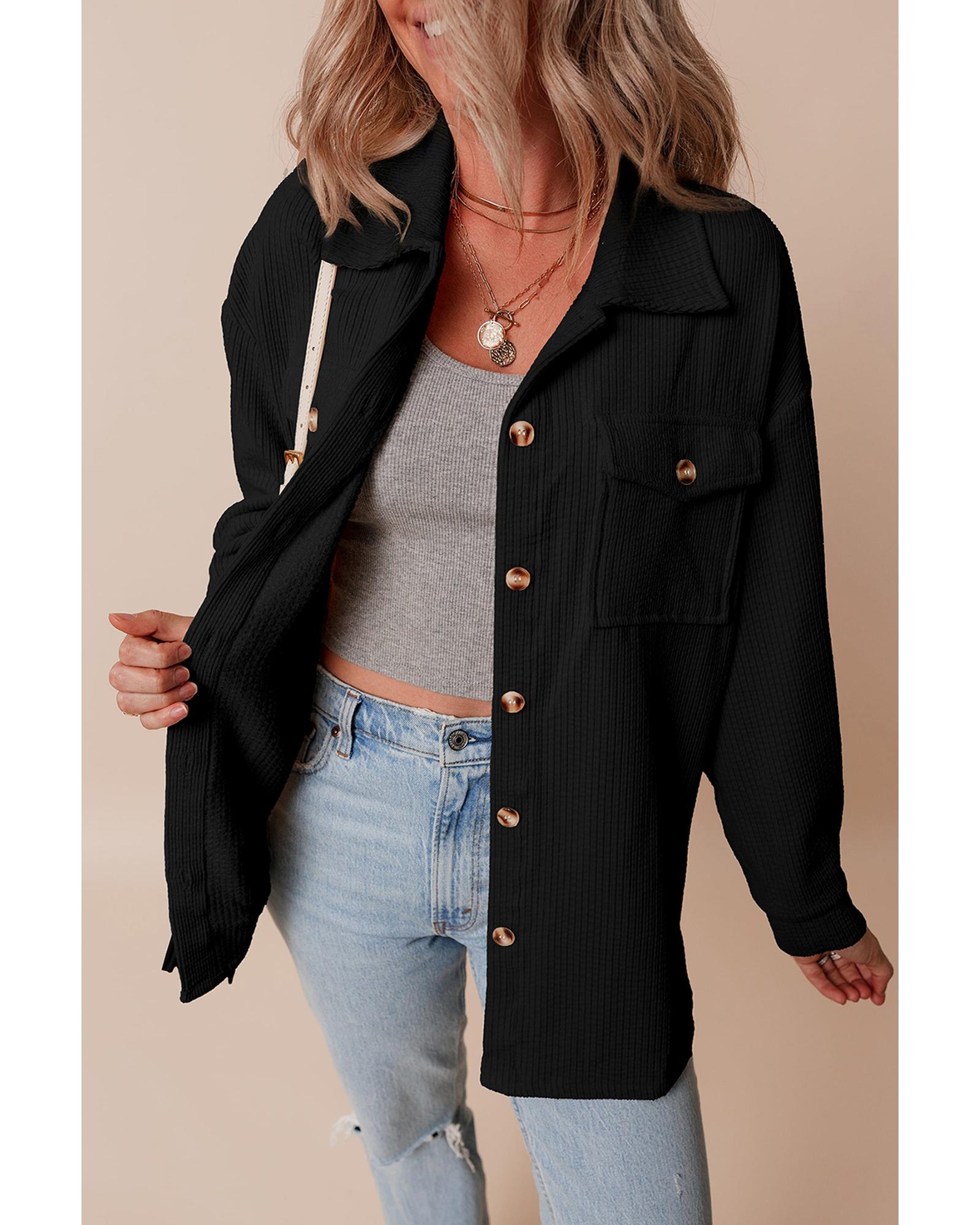Black Corduroy Flap Pocket Button Up Shacket – 2XL