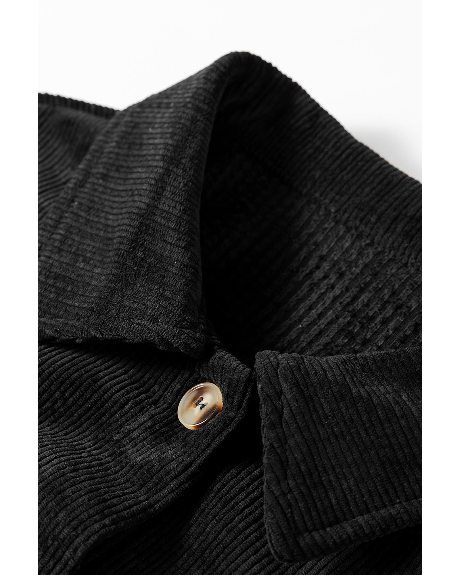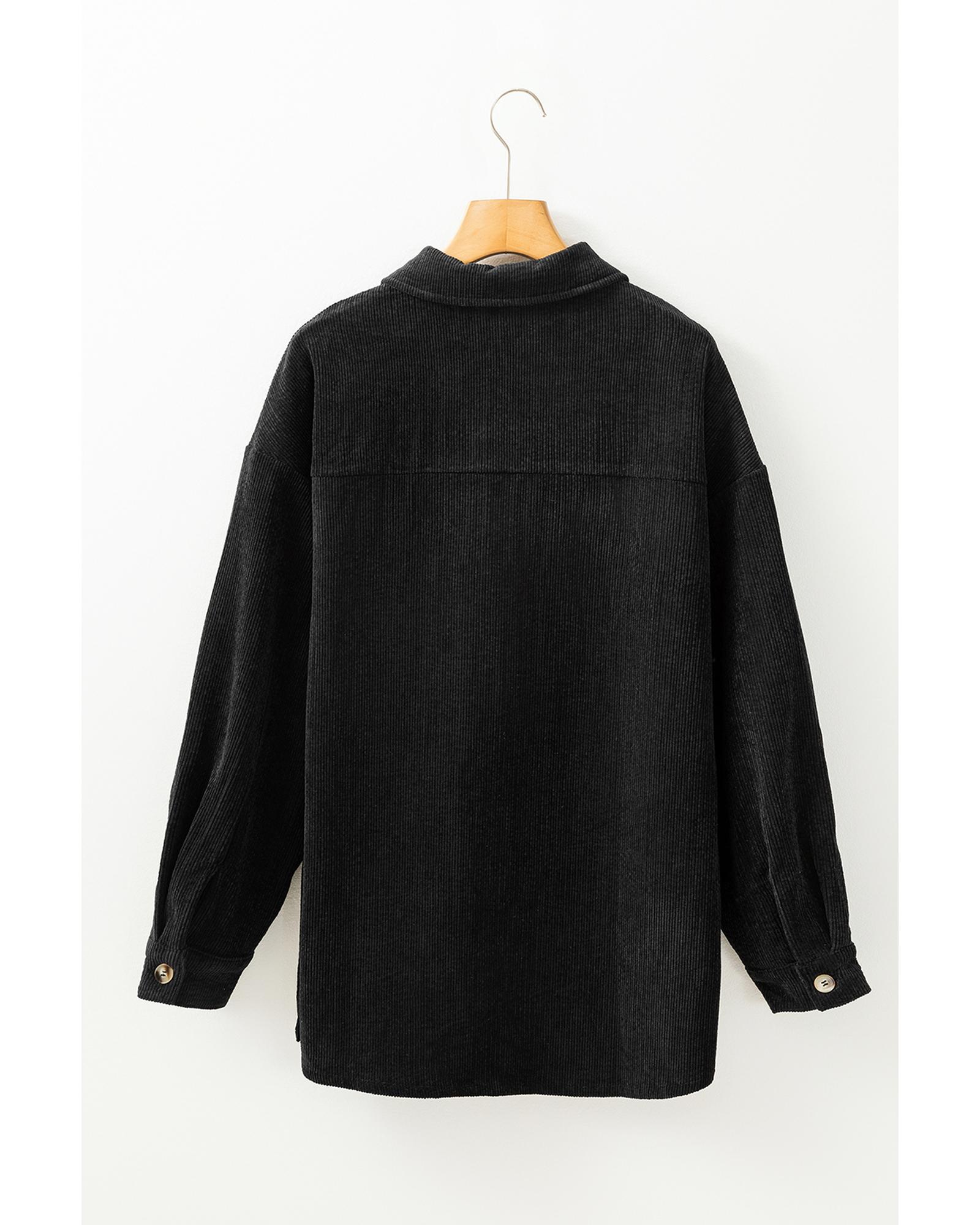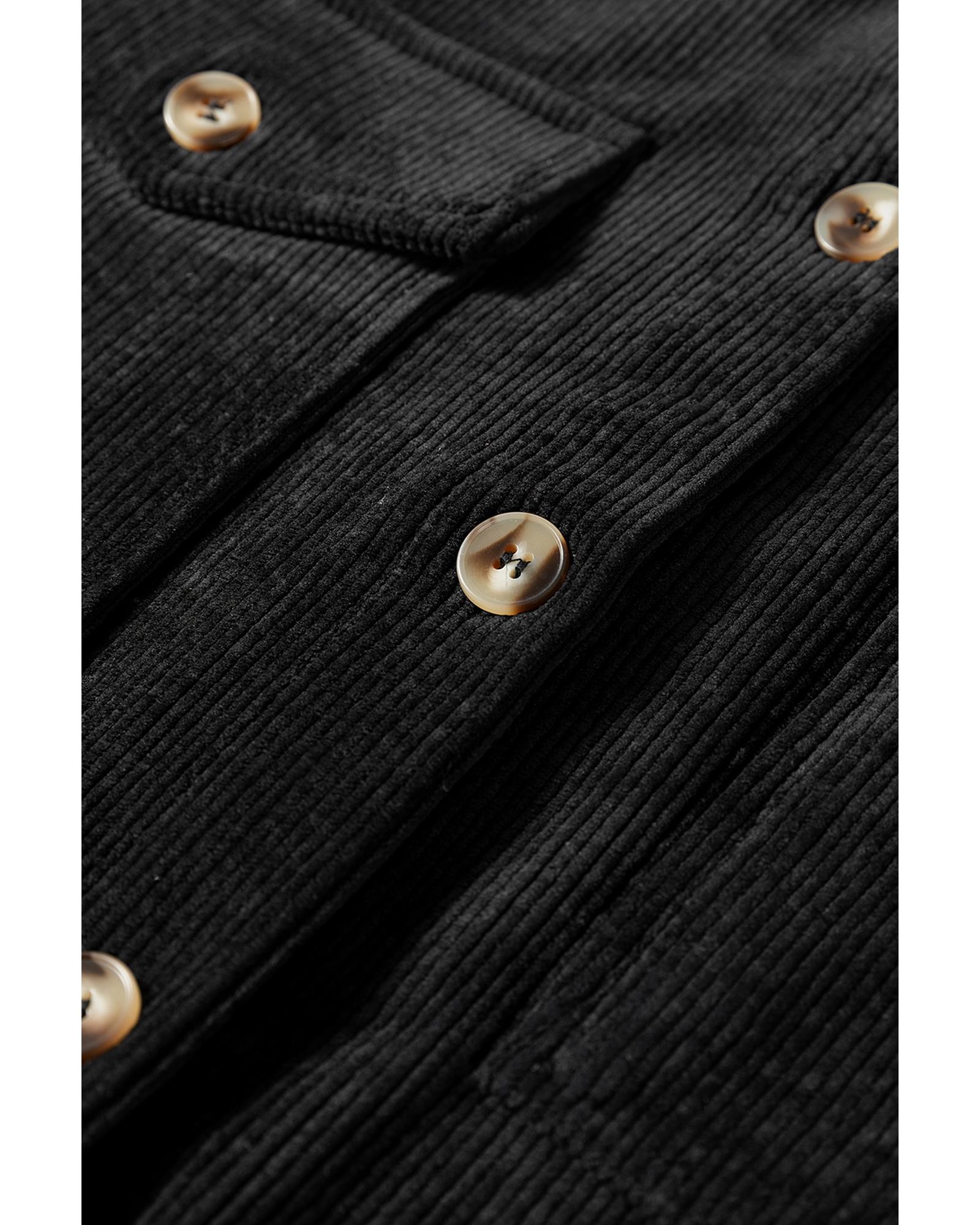 Black Corduroy Flap Pocket Button Up Shacket – L