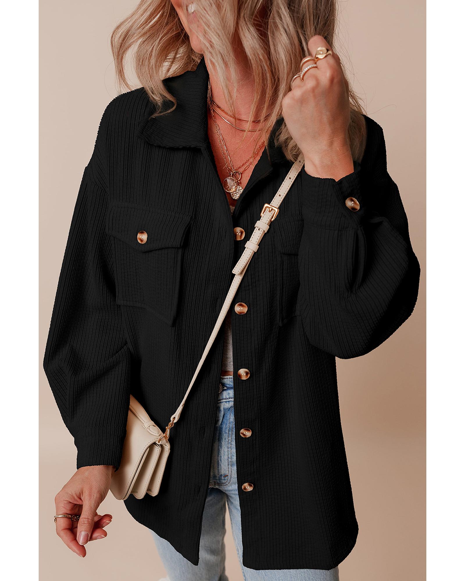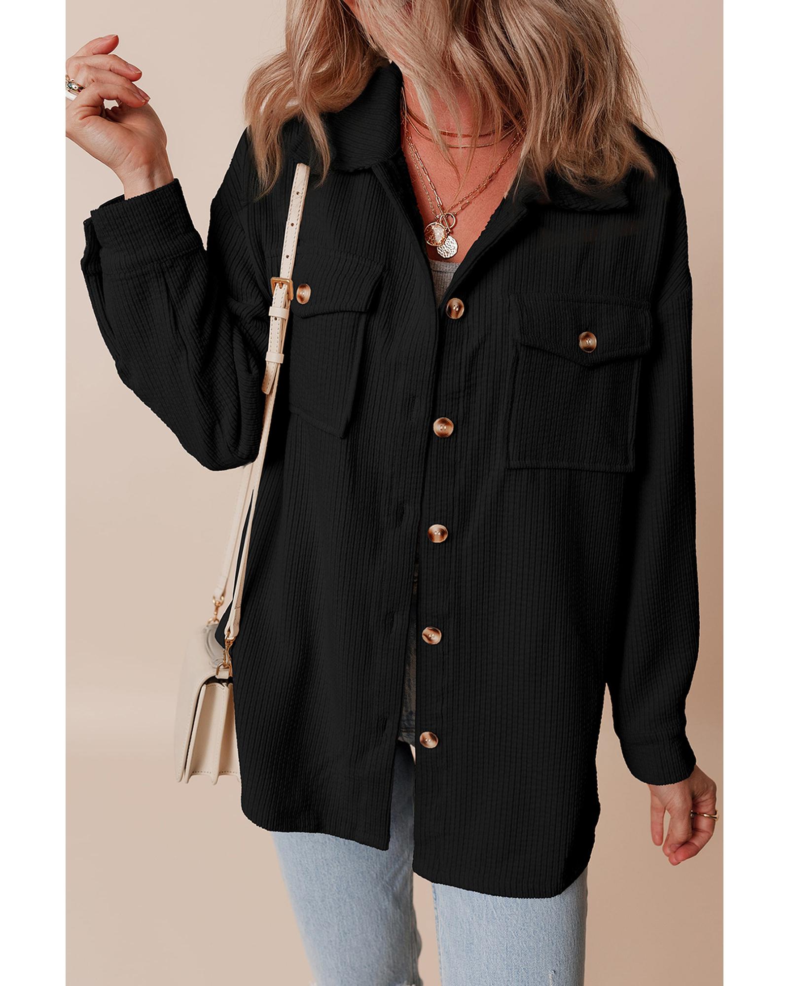 Black Corduroy Flap Pocket Button Up Shacket – M