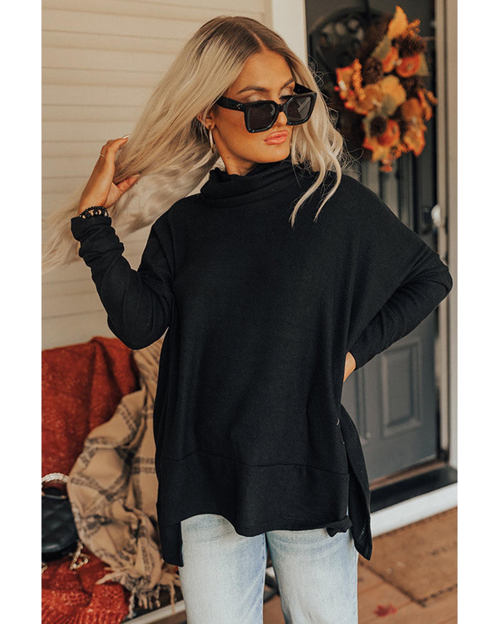 - Neckline: Cowl neck