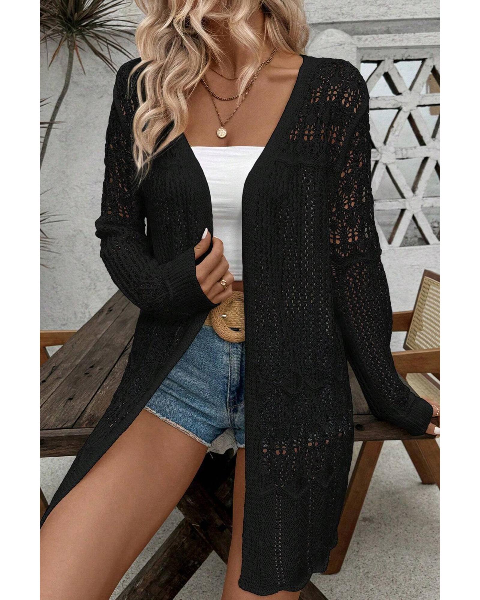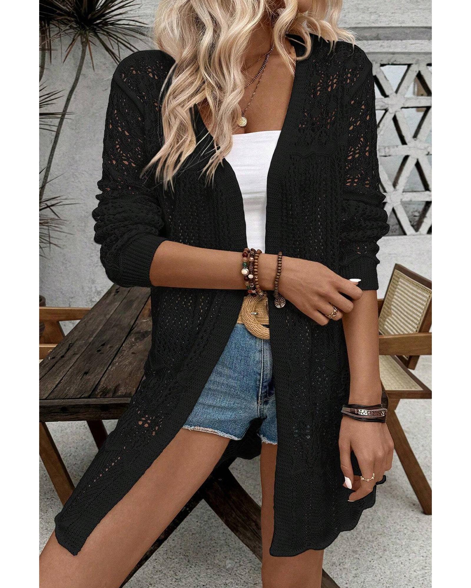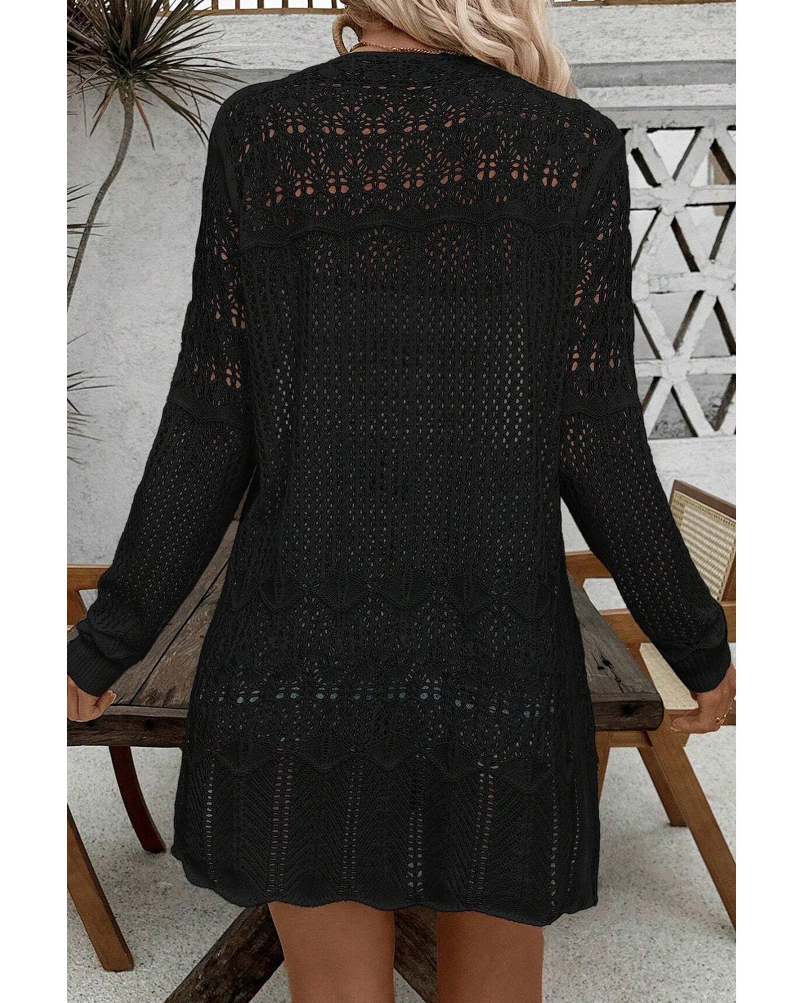 Black Crochet Hollow Out Open Front Cardigan – XL