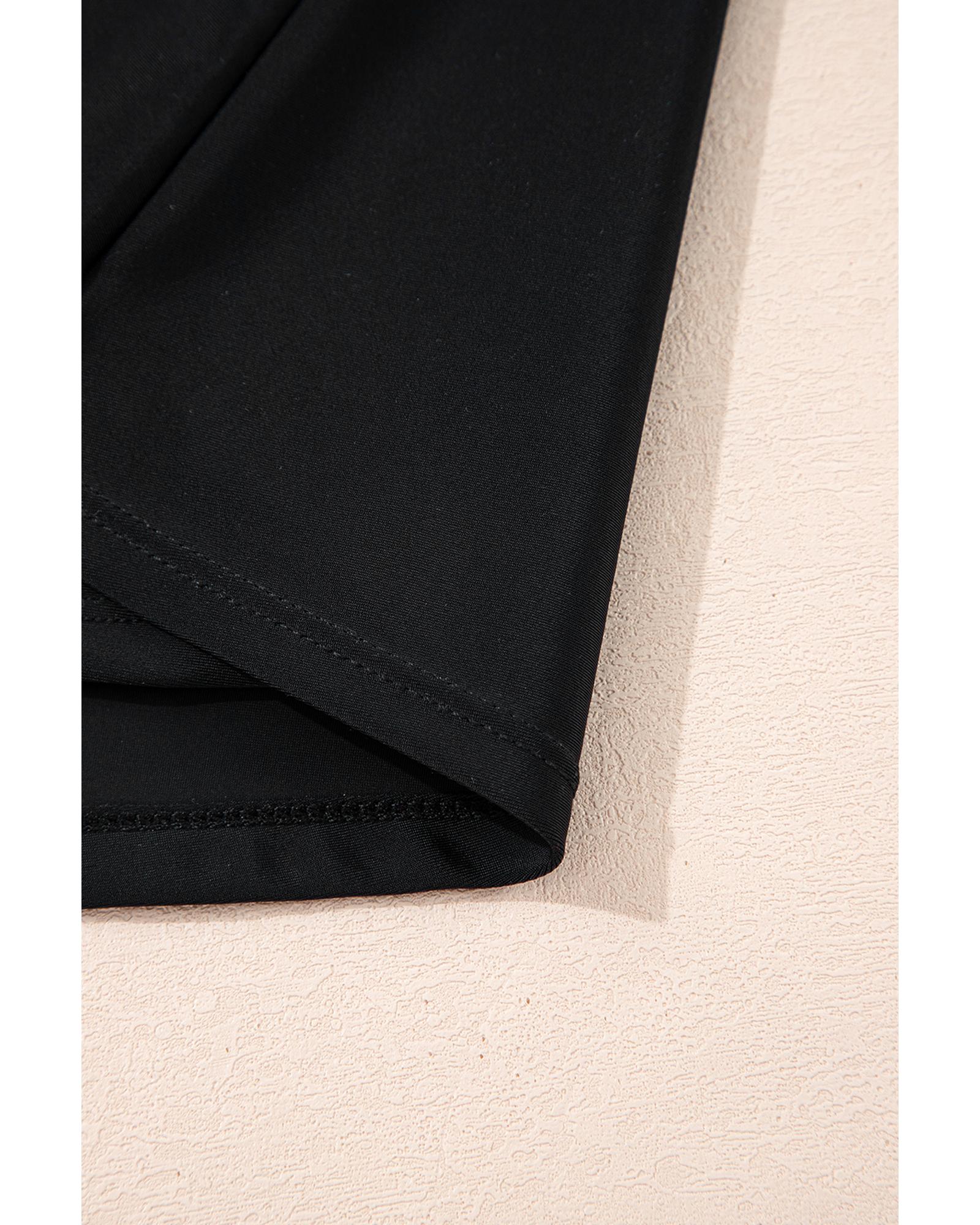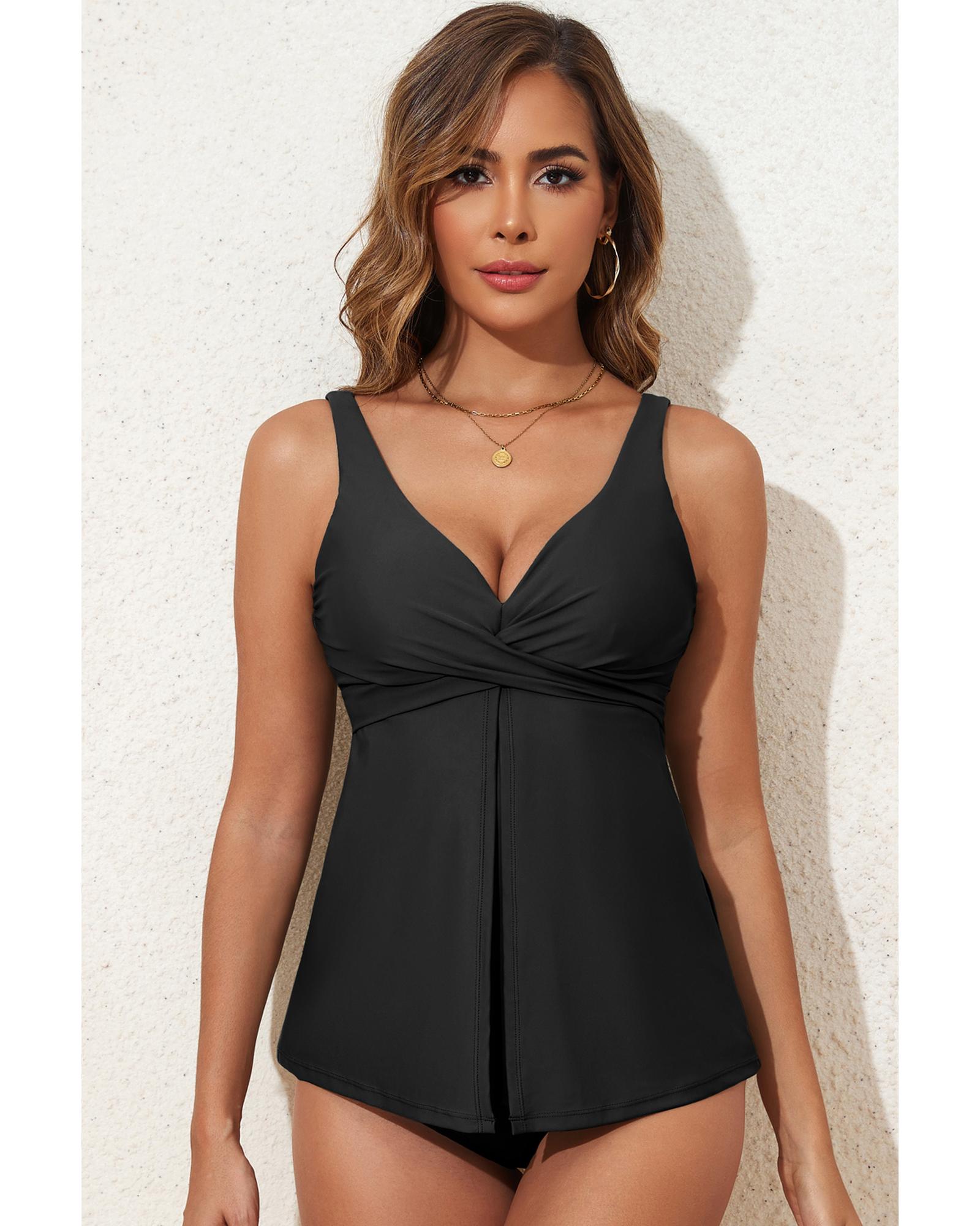 Black Crossed V Neck Adjustable Strap Babydoll Tankini Top – S