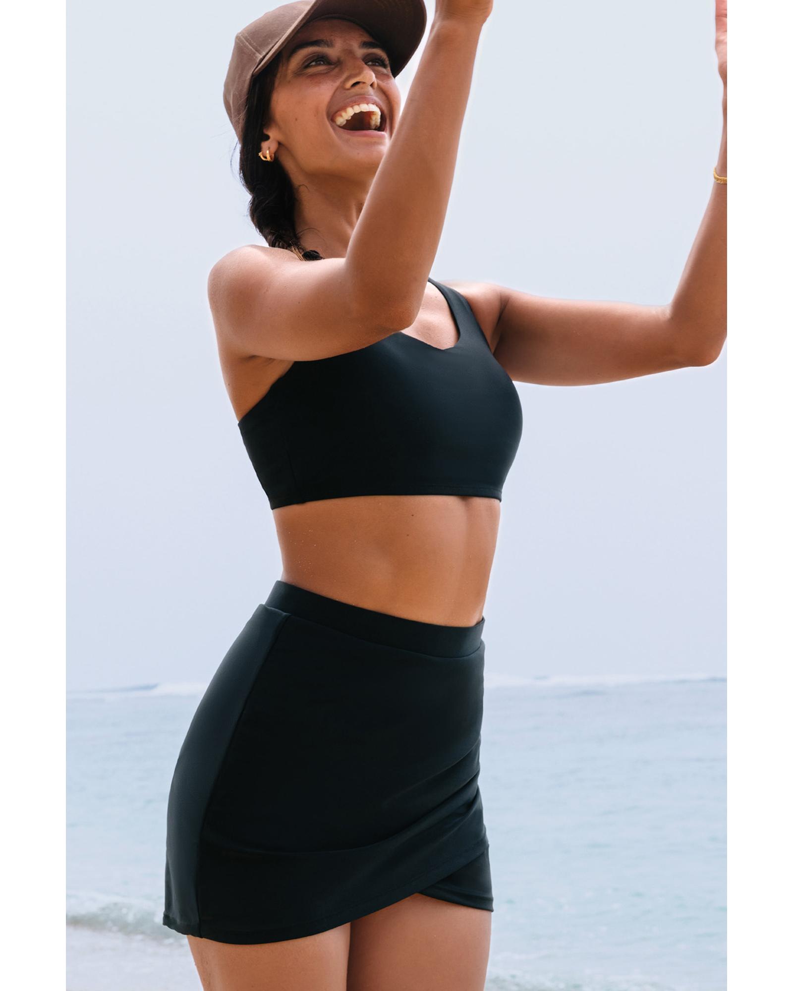 Black Crossover Bikini Tank and Skort Swimwear – L