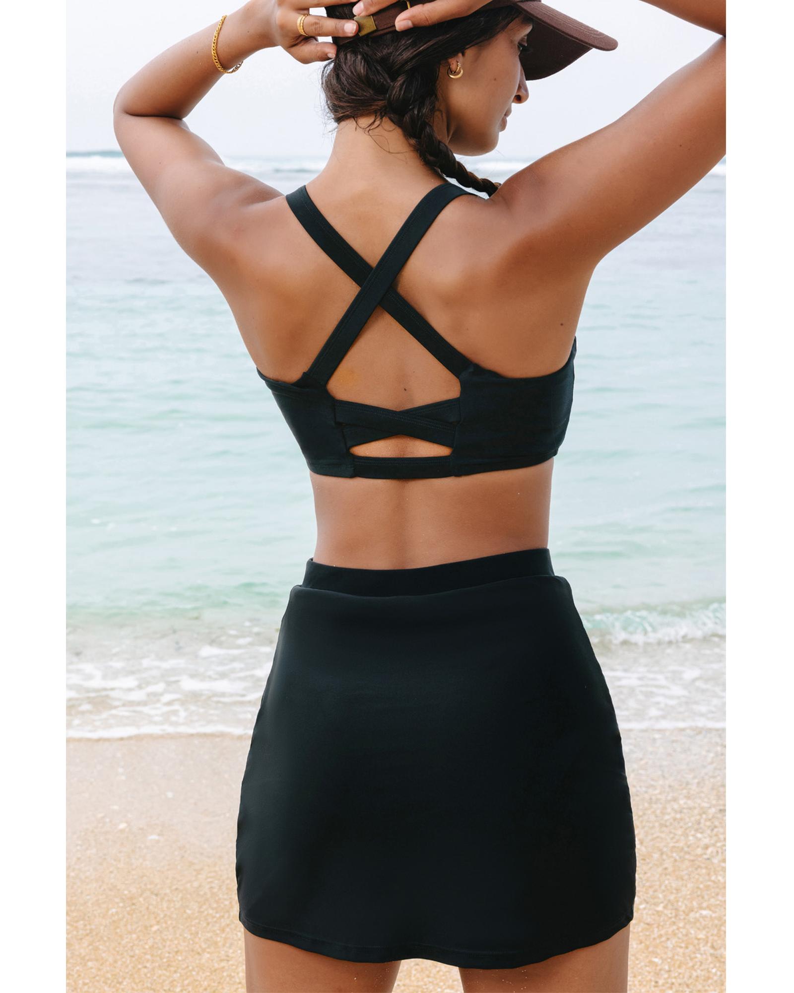 Black Crossover Bikini Tank and Skort Swimwear – XL