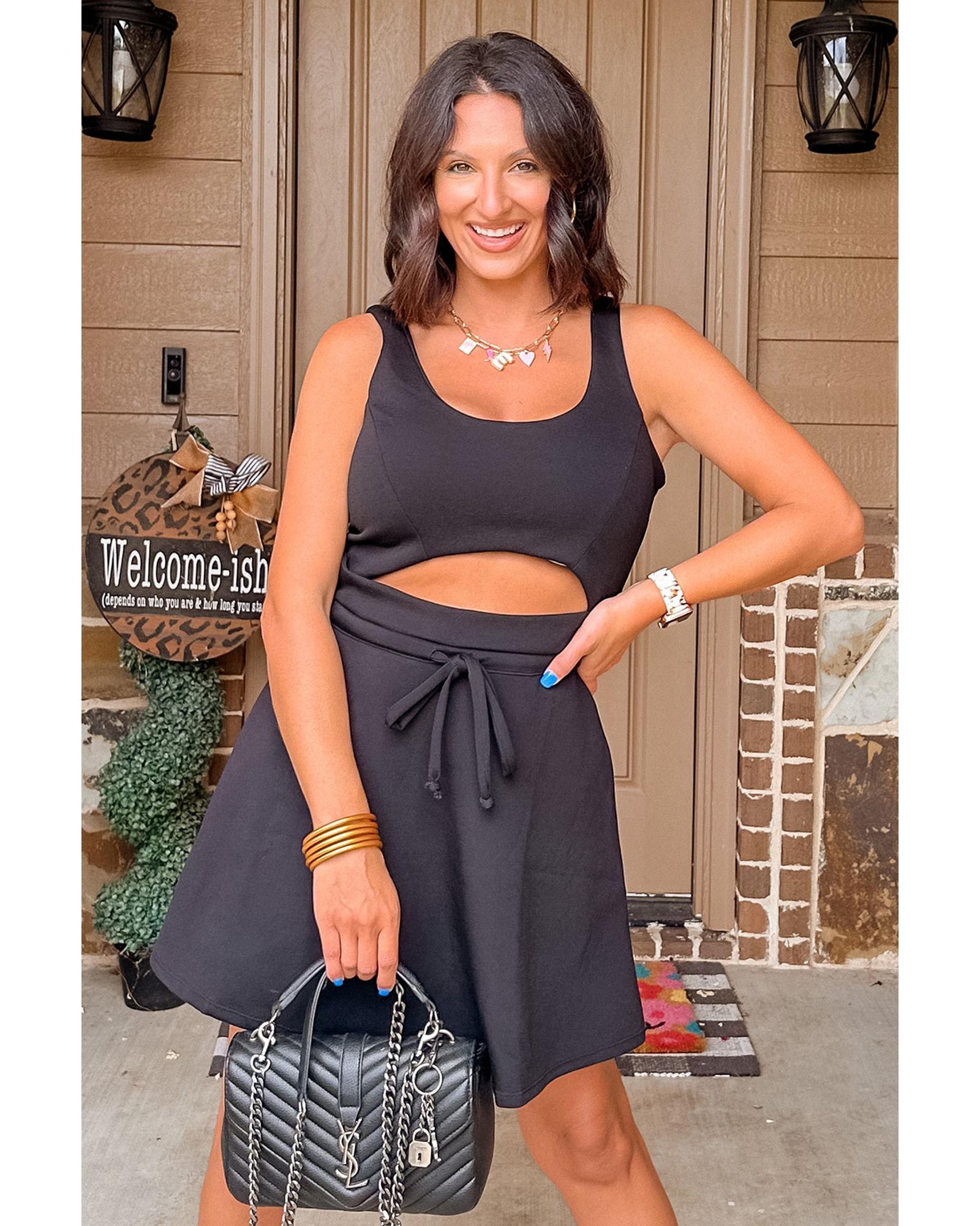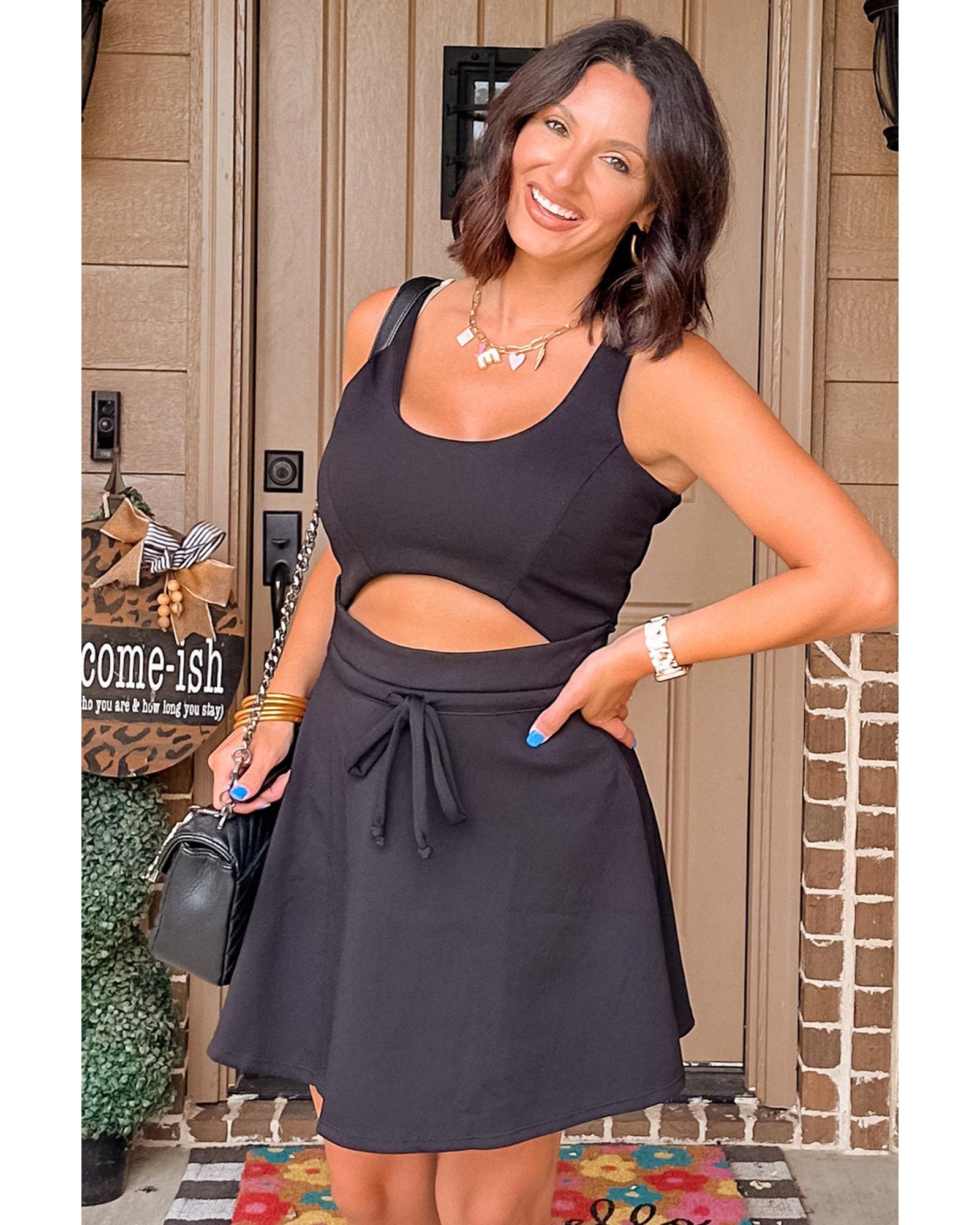 Black Cut Out Front High Waist Tank Mini Dress – L
