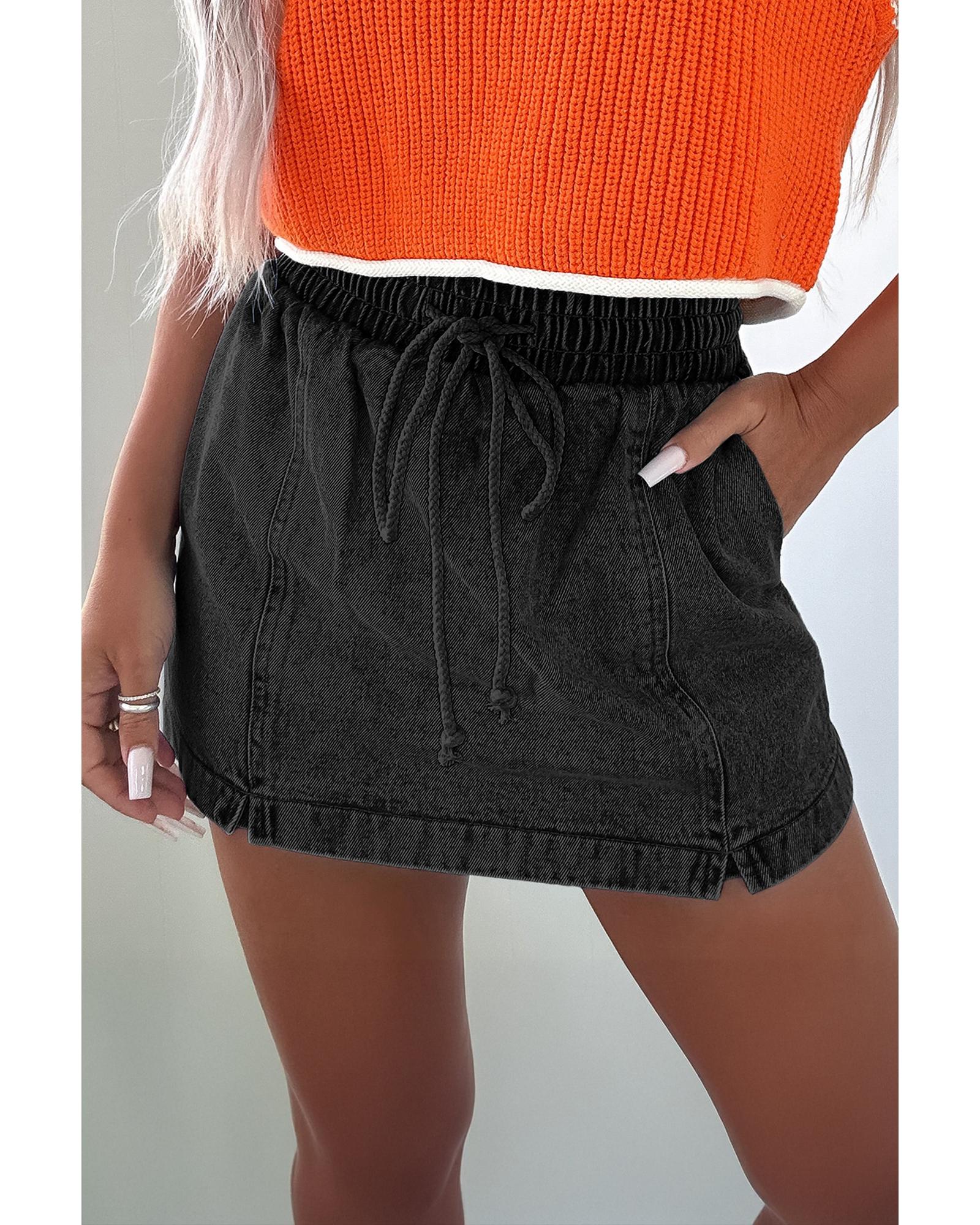 Black Drawstring High Waist Pocketed Denim Shorts – 4 US