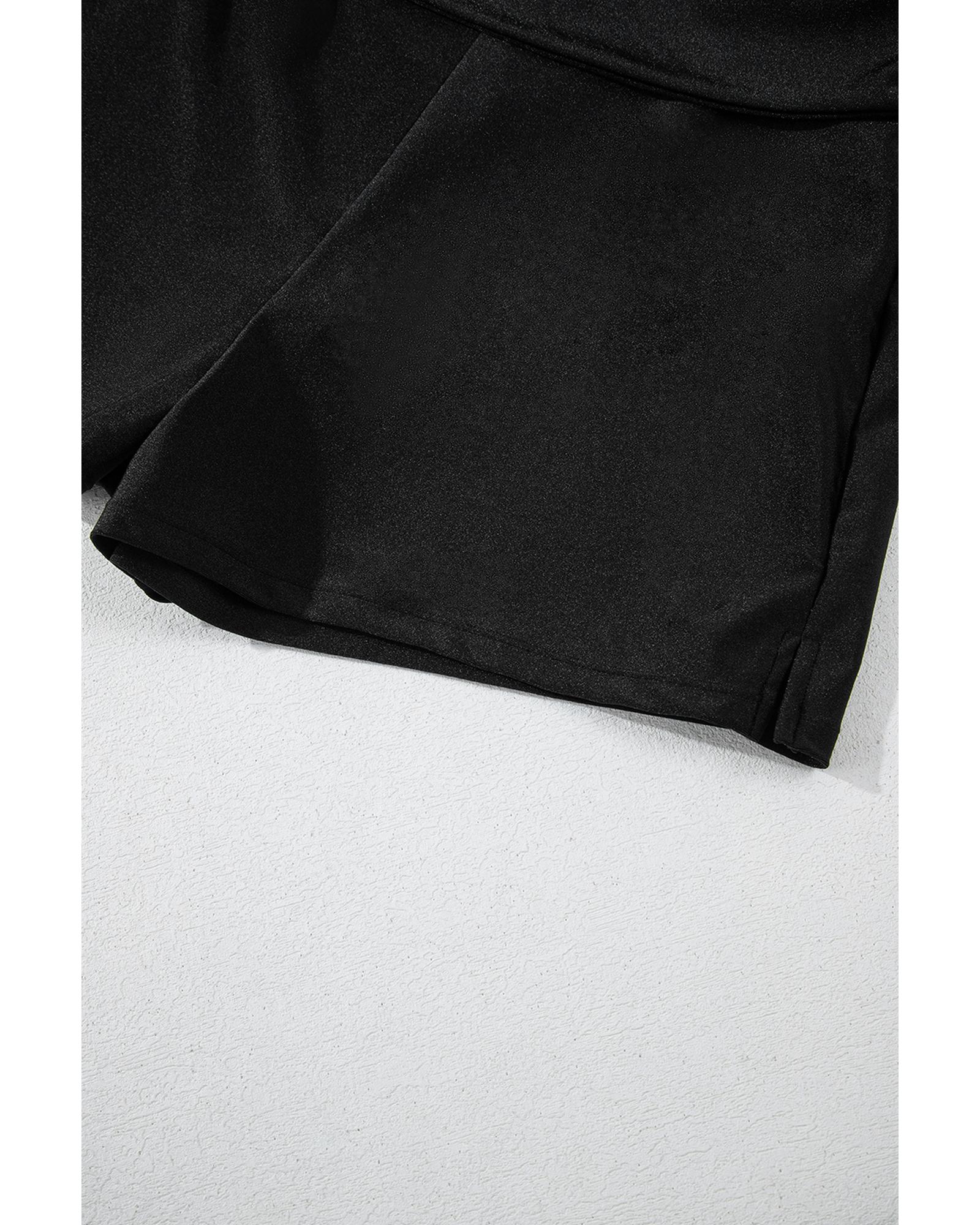 Black Drawstring Ruched High Waist Loose Swim Shorts - L