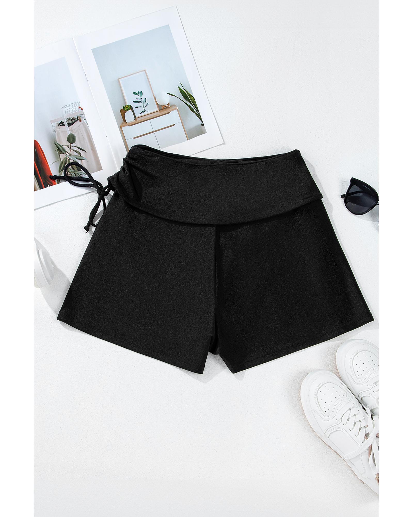 Black Drawstring Ruched High Waist Loose Swim Shorts – M