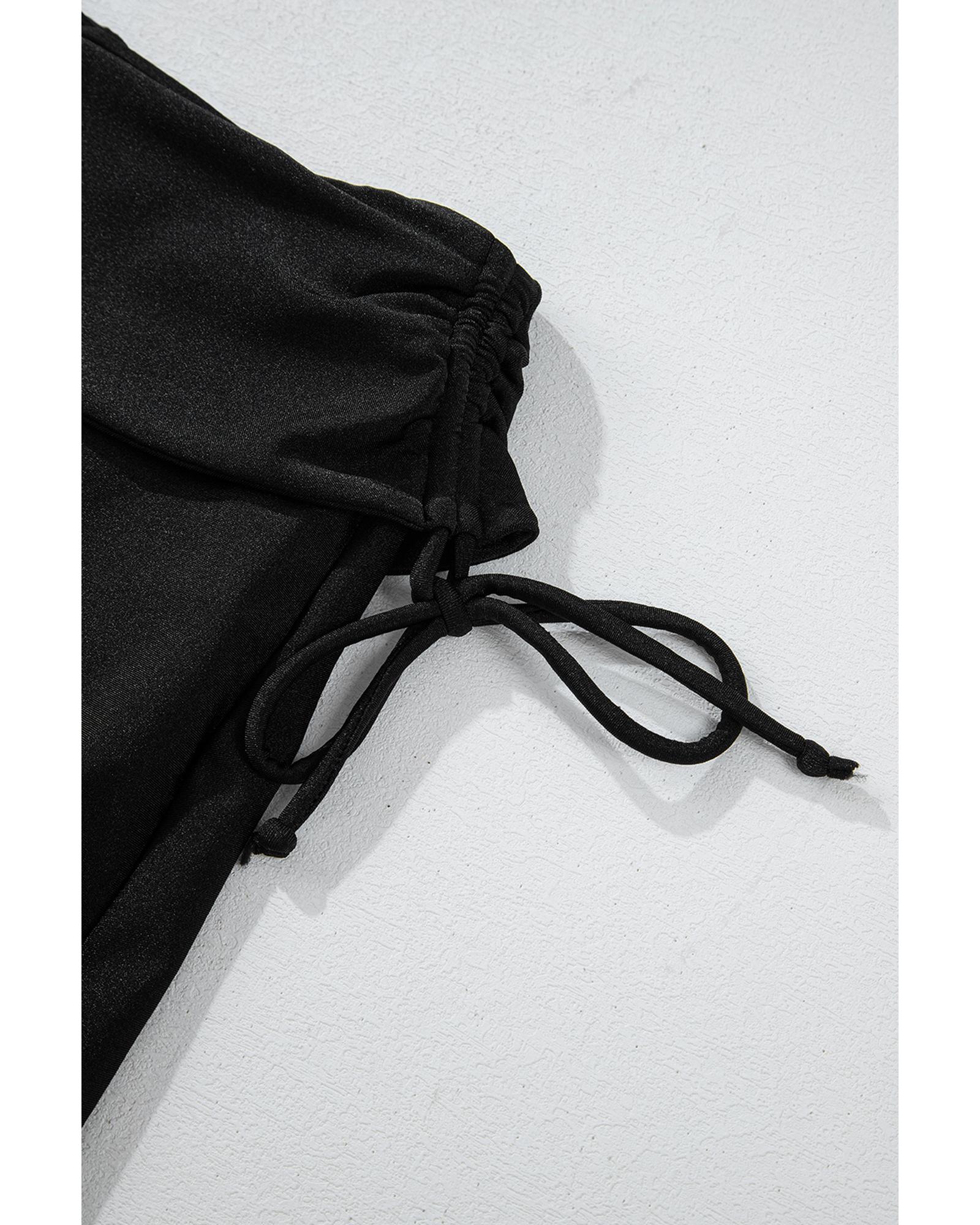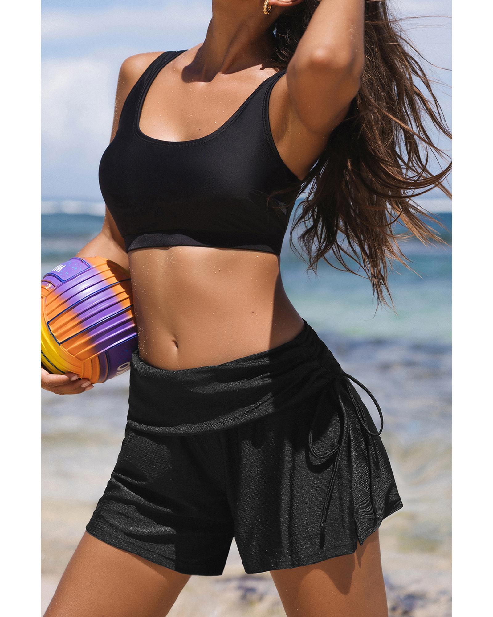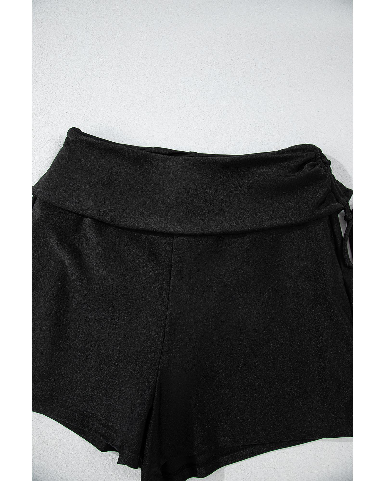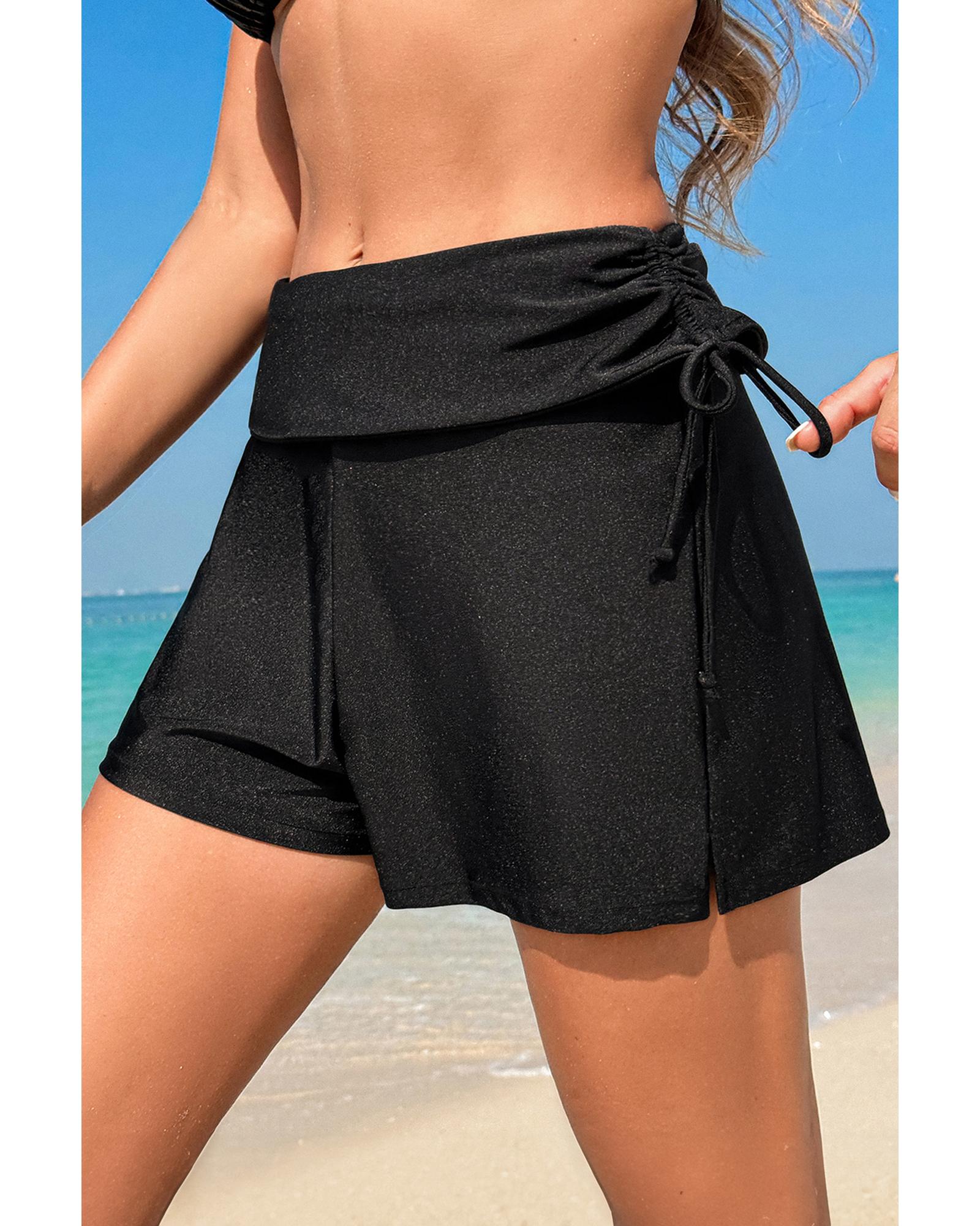 Black Drawstring Ruched High Waist Loose Swim Shorts – XL