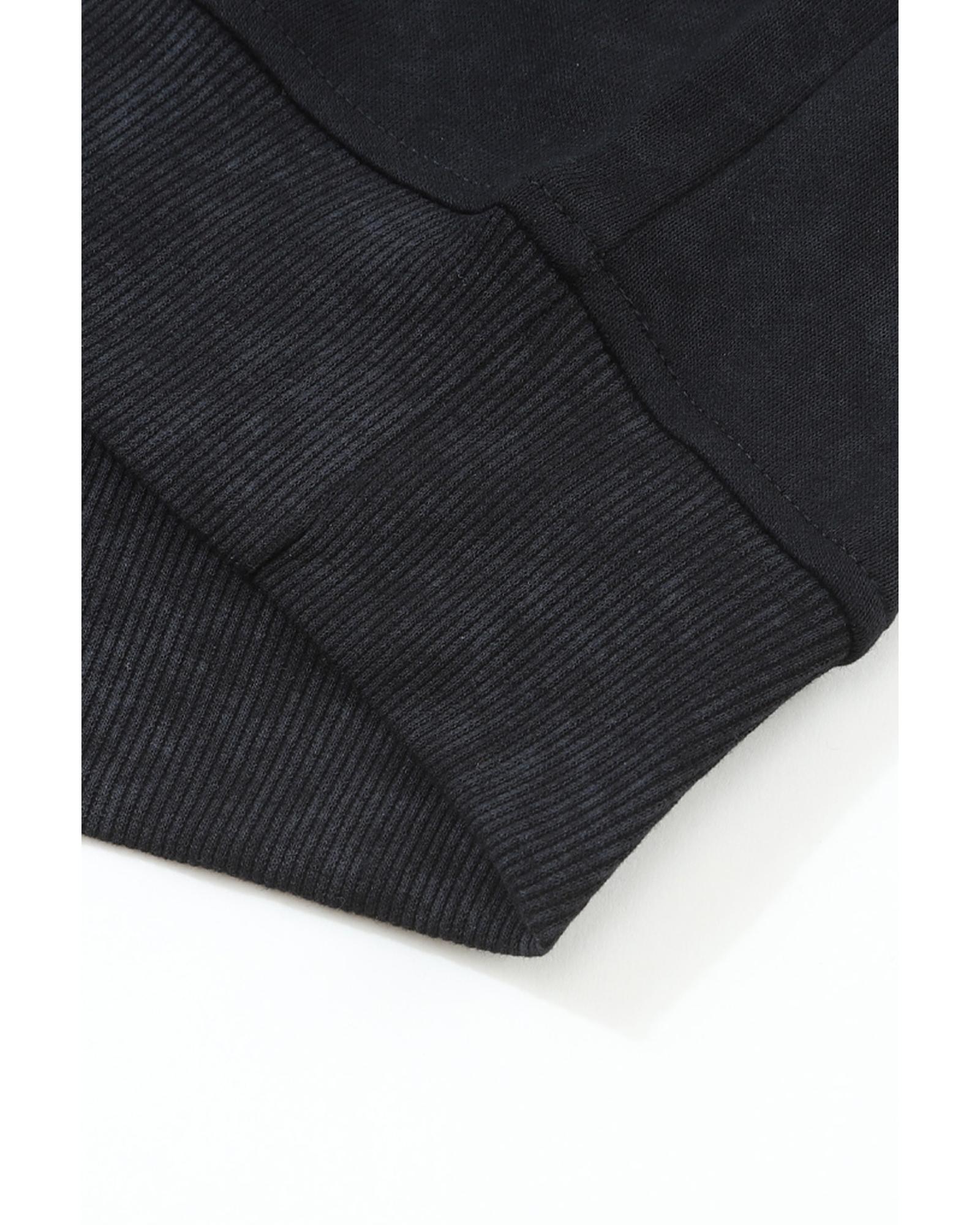 Black Drop Shoulder Crew Neck Pullover Sweatshirt – S